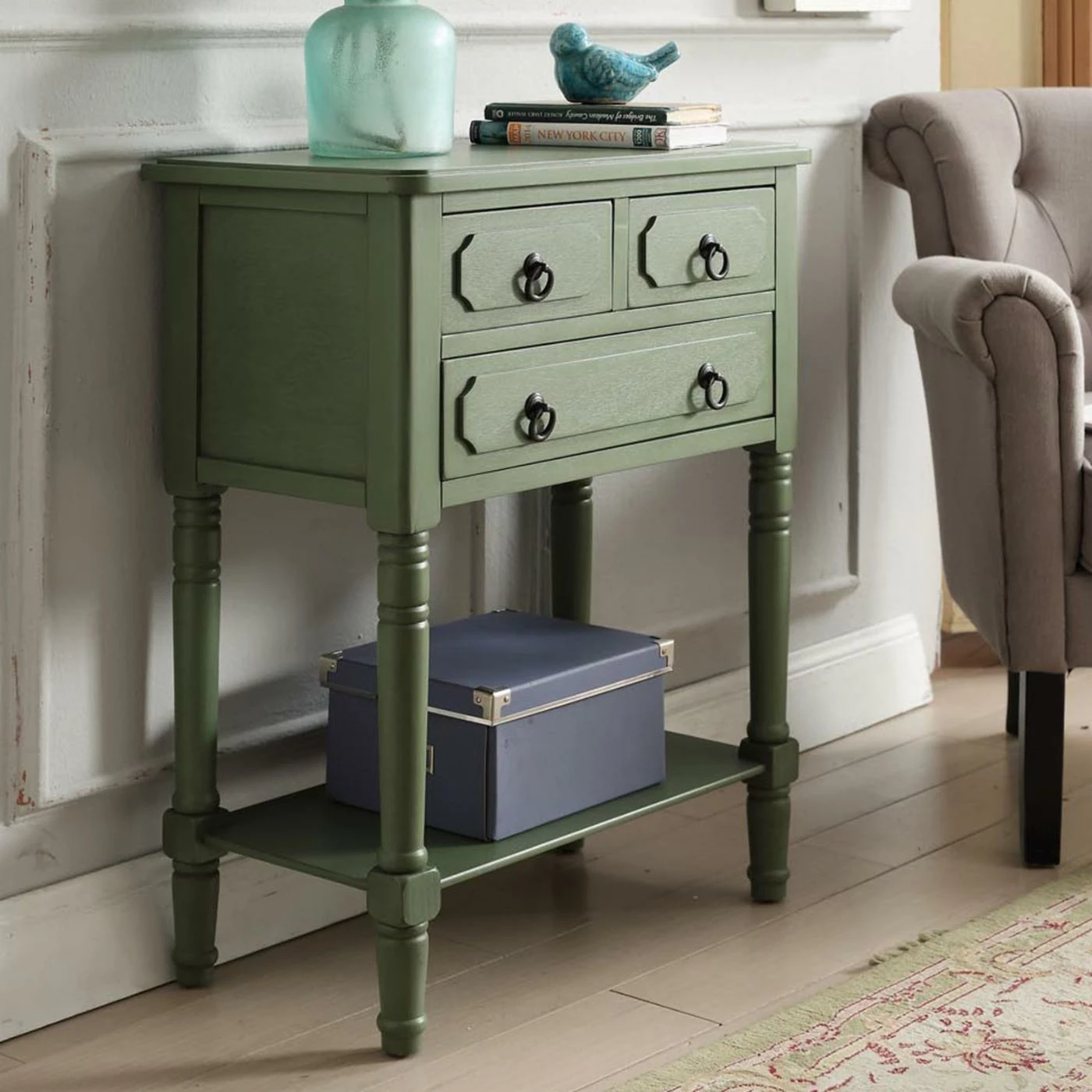 The 4D Concepts Simplicity 3 Drawer Chest lets you bring a traditional accent to any room. This versatile piece features all-wood construction with turned legs and spacious drawers for storage. A lower shelf offers additional display space. Choose from available finish options. Ring pulls on drawers add vintage appeal and come in a bronze finish.