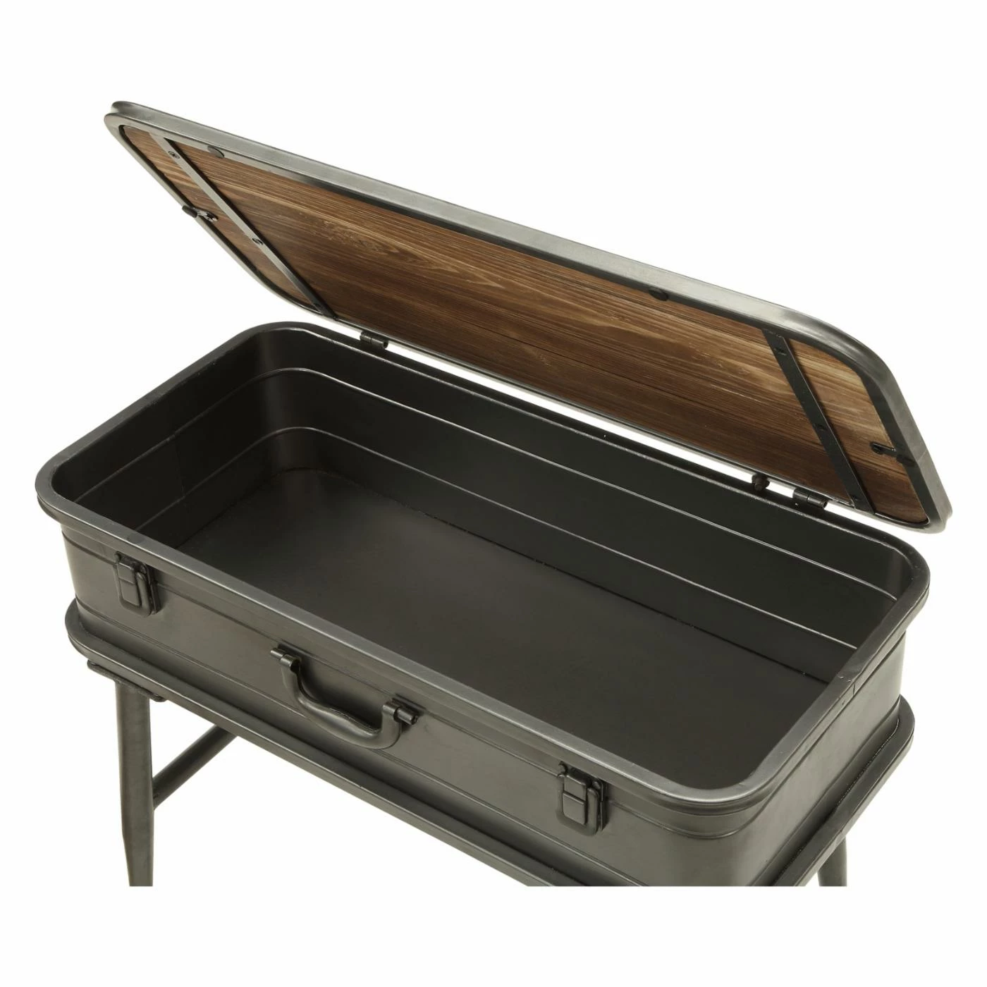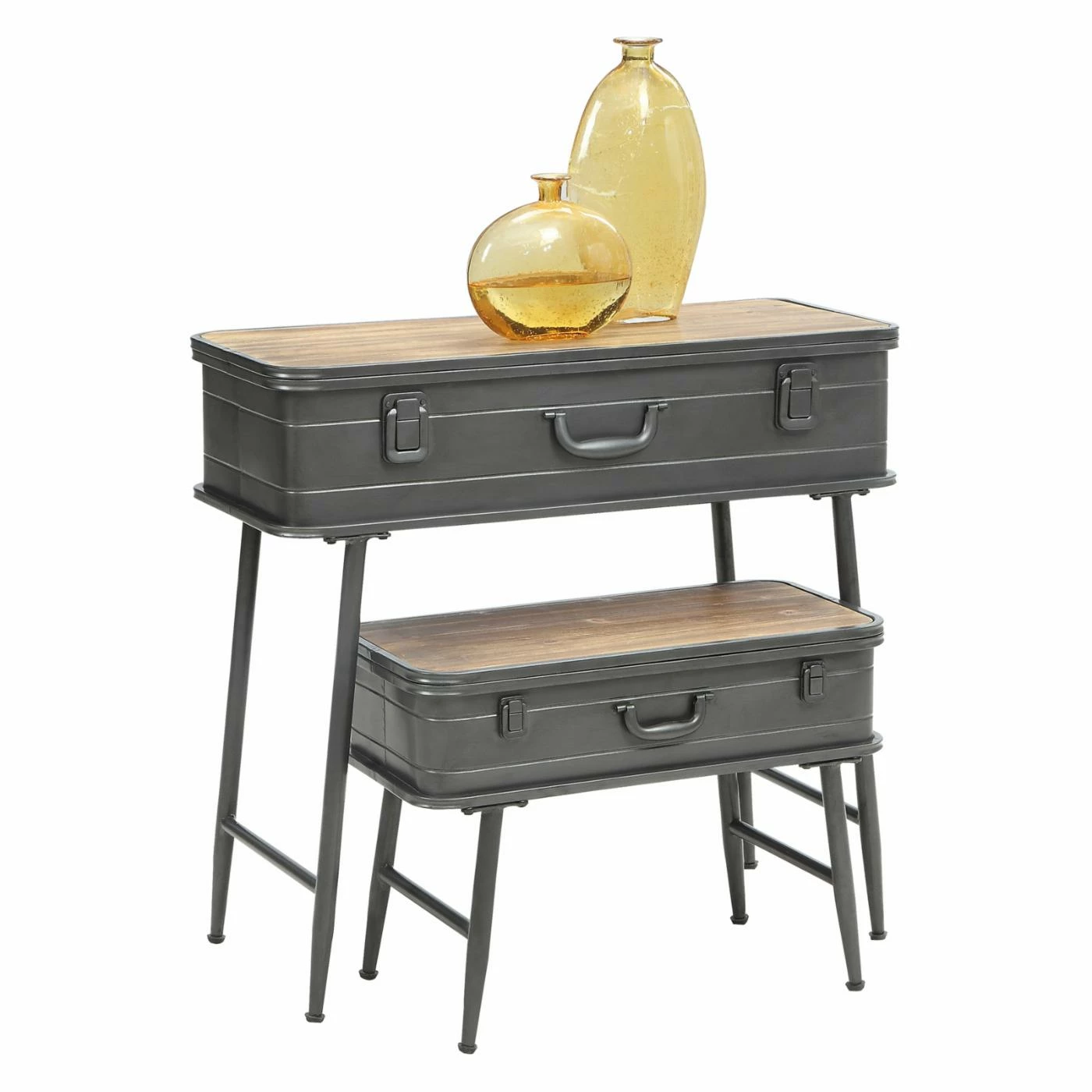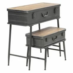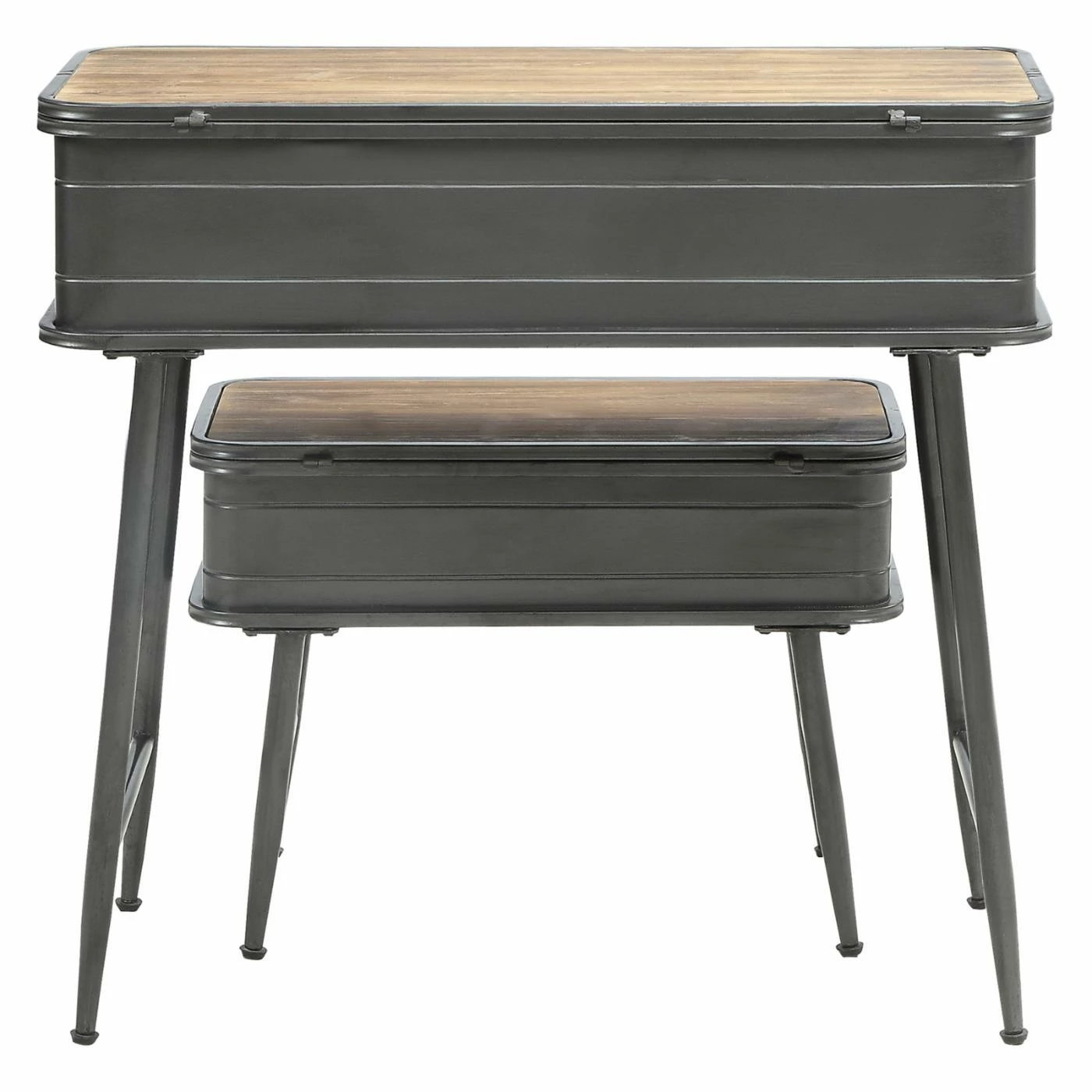 Brimming with industrial appeal, the 4D Concepts Urban Loft Metal Nesting Trunk Tables brings a stylish spin to your home storage décor. These nesting tables are designed to look like trunks with decorative pull handles and hinges. Crafted from rustic gray metal, this set features distressed pine-finished tops that lift open to reveal spacious interior storage.