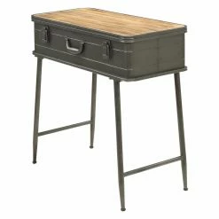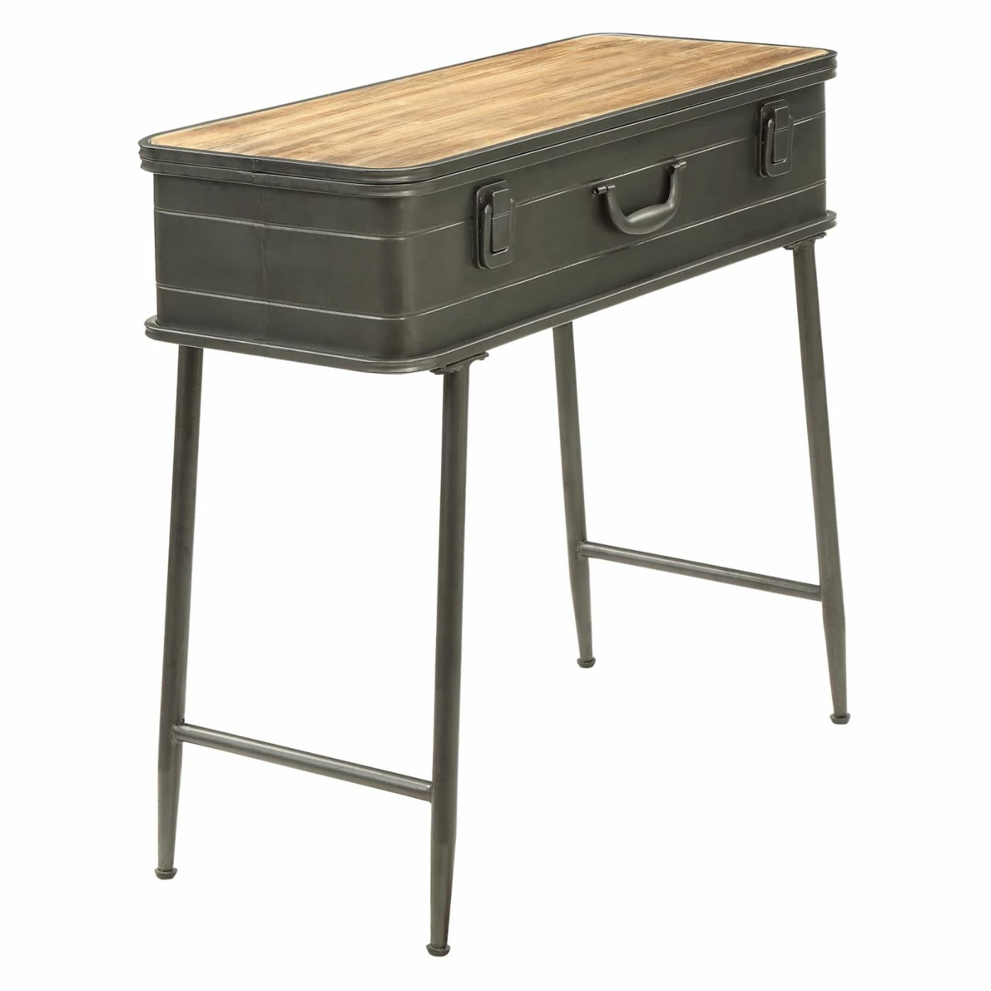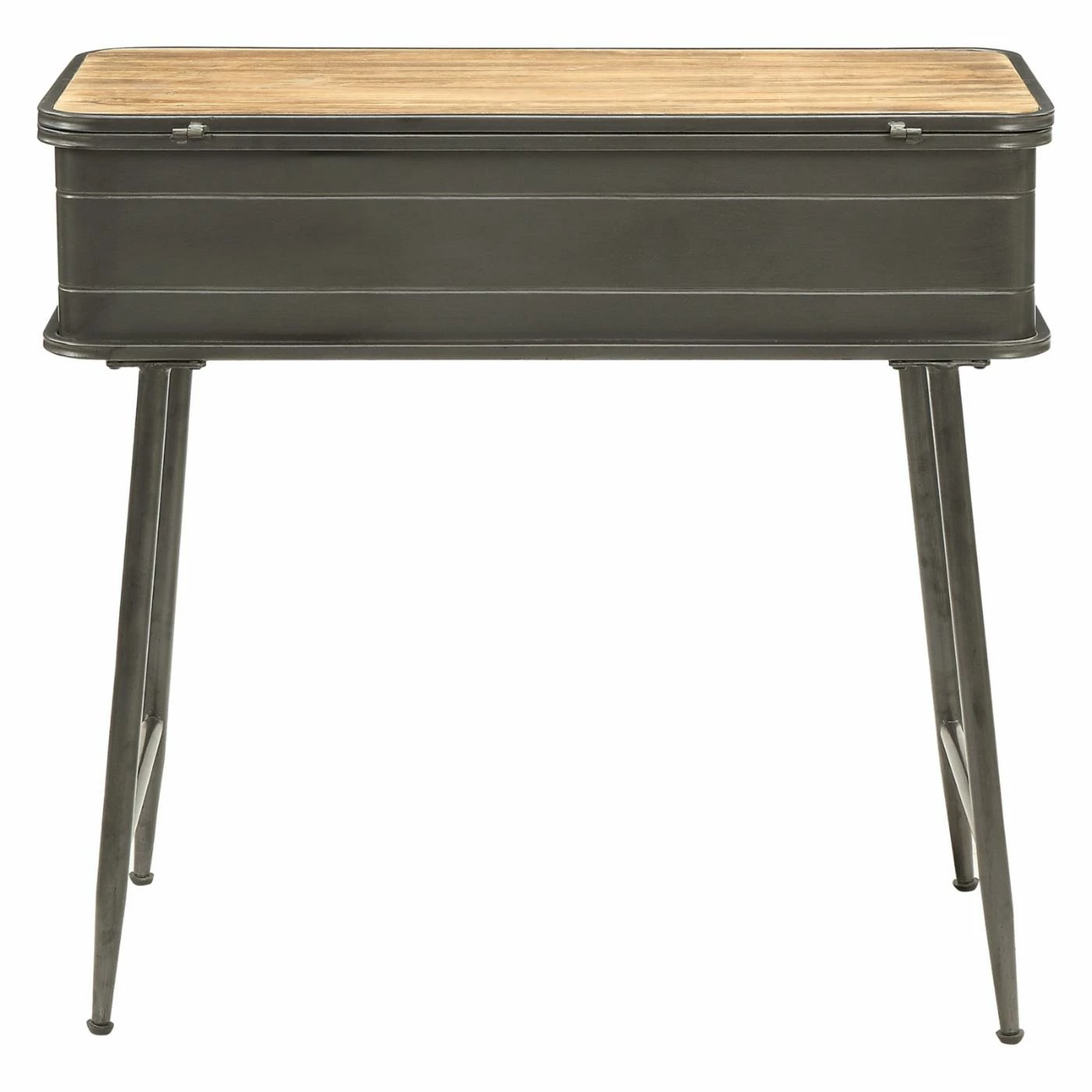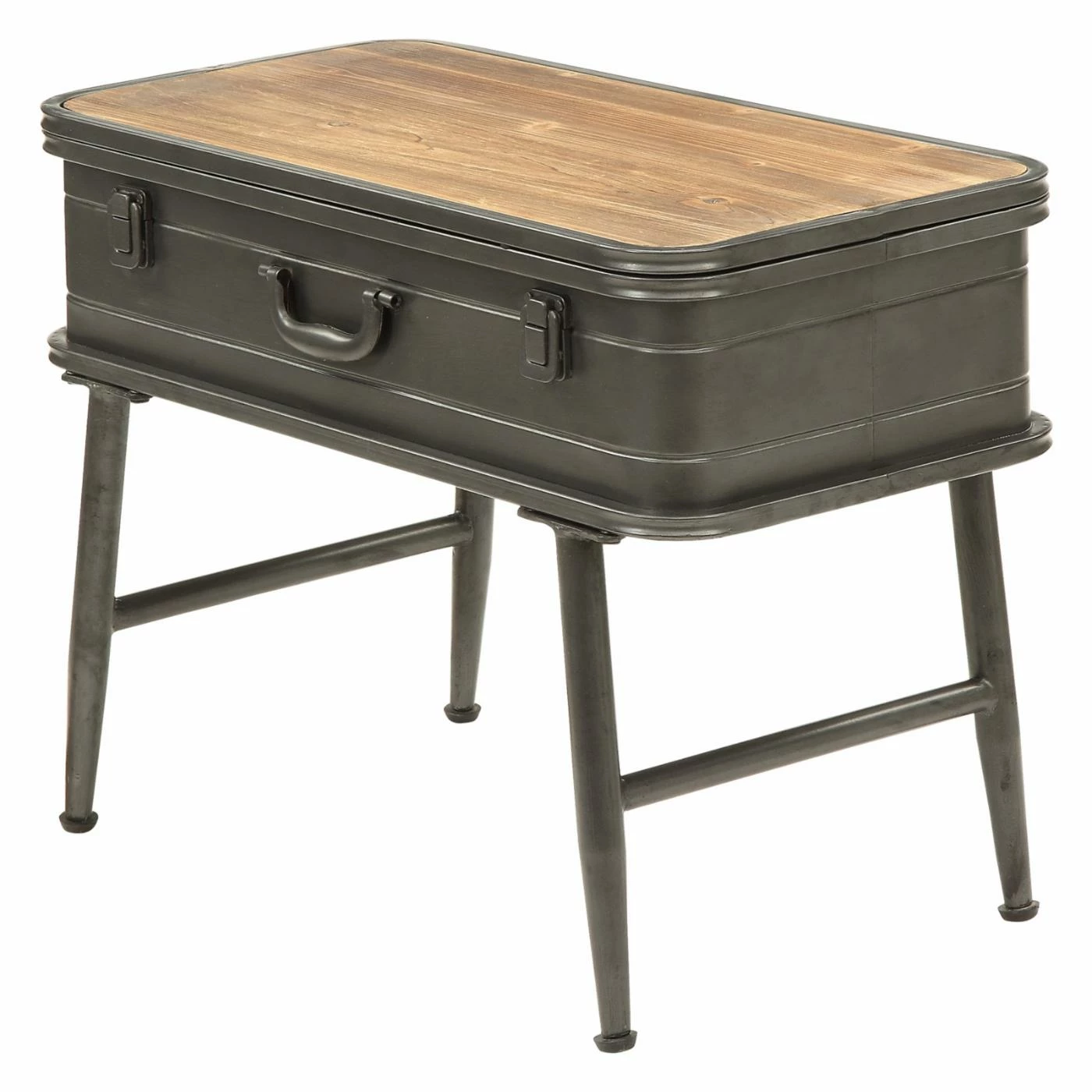 Brimming with industrial appeal, the 4D Concepts Urban Loft Metal Nesting Trunk Tables brings a stylish spin to your home storage décor. These nesting tables are designed to look like trunks with decorative pull handles and hinges. Crafted from rustic gray metal, this set features distressed pine-finished tops that lift open to reveal spacious interior storage.