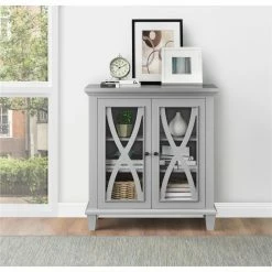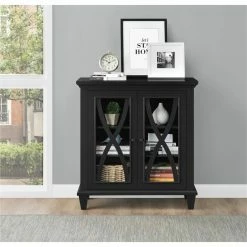 Make your knickknack storage a true statement piece with the Altra Furniture 2 Door Decorative Chest. Available in your choice of finish, this MDF cabinet can stand out according to your personal style. Keep your belongings safe from dust and wear behind two glass doors with curved X detailing. The three shelves are sure to hold everything you need.