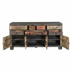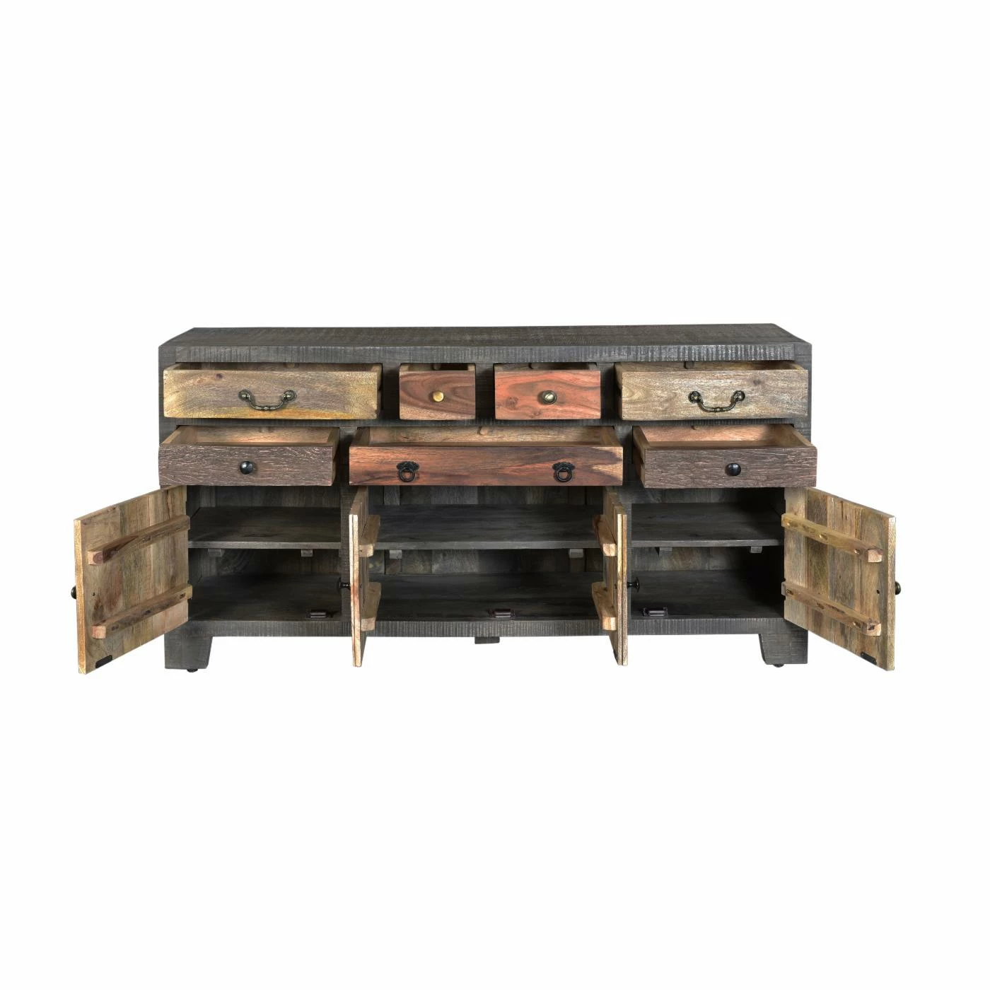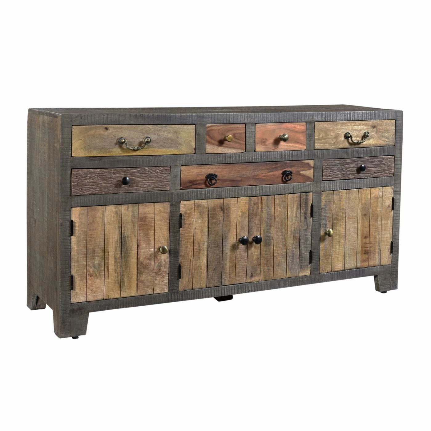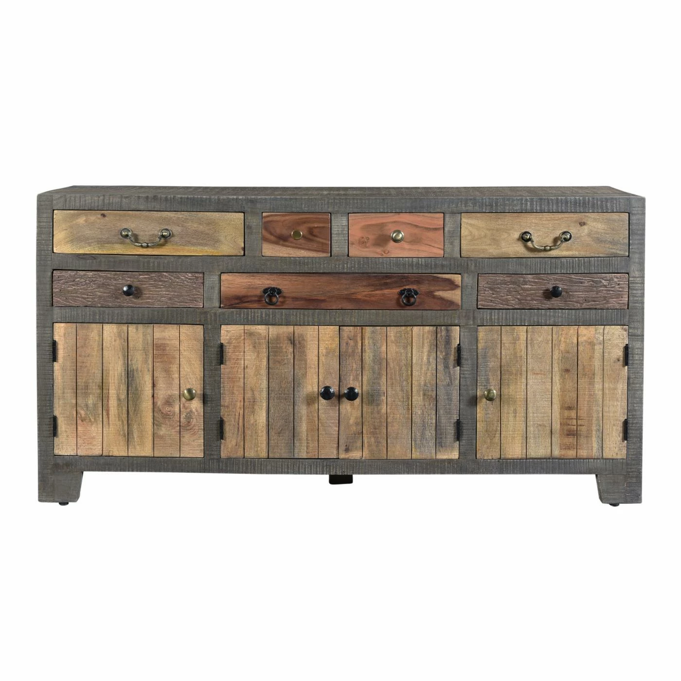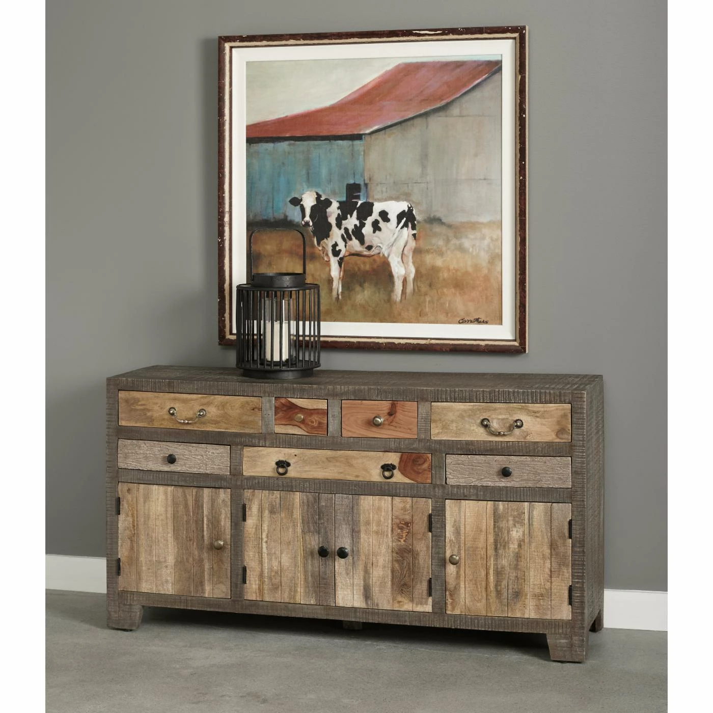 Rustic styling lends a chic note to the Coast to Coast Woodland Natural 7 Drawer Credenza Sideboard. This credenza sideboard boasts a medley of wood types that includes acacia, mango, sheesham, and even reclaimed wood pieces. Decorative hardware adds an attractive flourish to its look. With its spacious storage space, this piece will add both decorative and functional charm to your home.