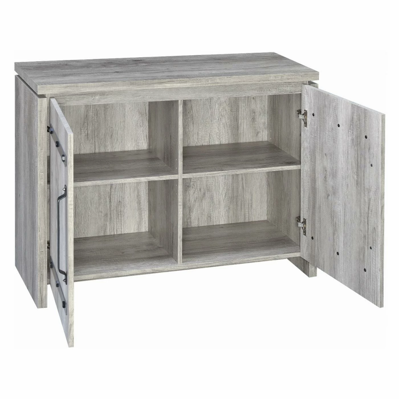 The Coaster Furniture 2-Door Accent Cabinet offers stylish storage for your farmhouse-inspired dΓ©cor. This solid wood cabinet features a weathered gray finish. Interior storage is located behind the two cabinet doors with decorative metal hardware.