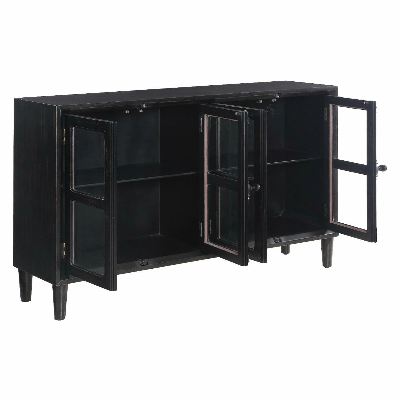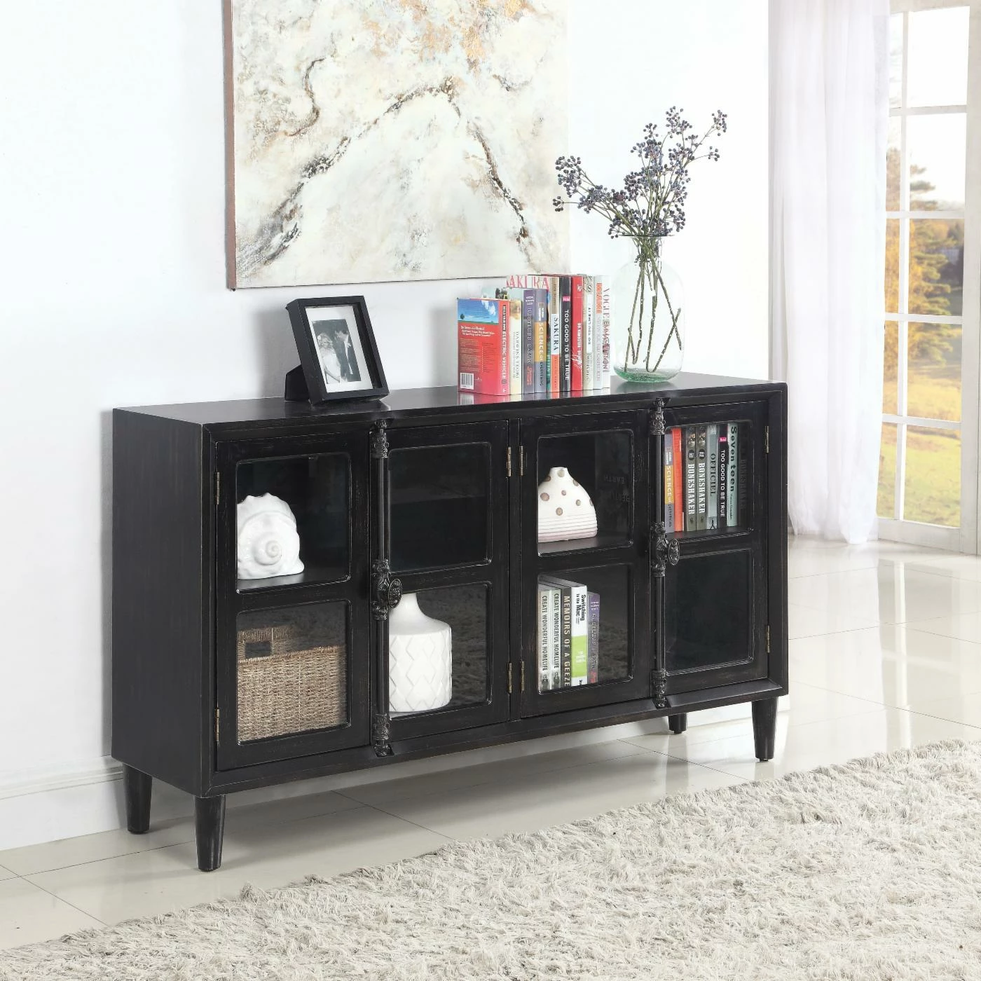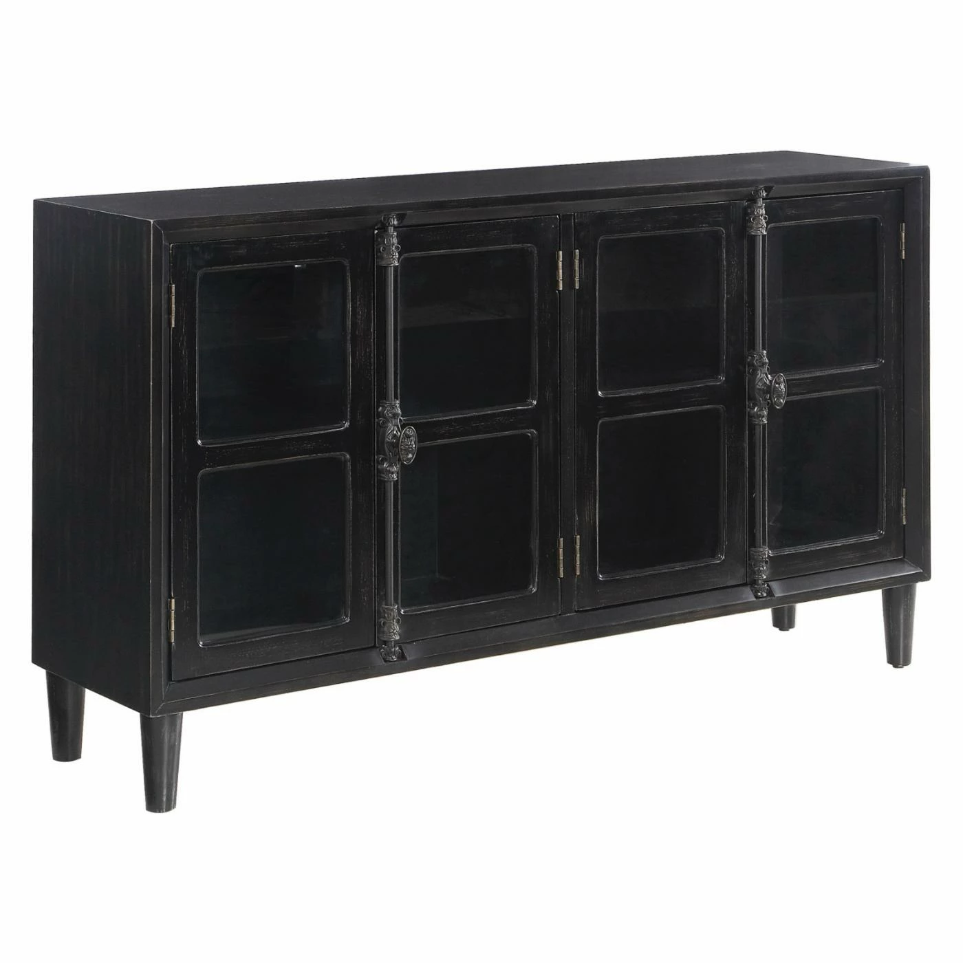 Display your favorite keepsakes in the charming Coaster Furniture Glass Door Accent Cabinet. The windowpane-style doors are accented with antique French door bolts. Interior shelving offers ample storage and display space.