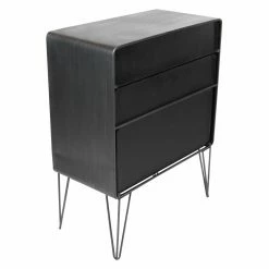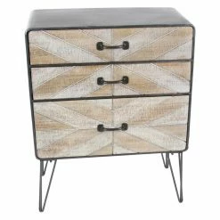 Store and display your items in style with the DecMode Chevron Wood Decorative Chest. Perfect for bedrooms and living rooms, this decorative chest features three drawers and a large flat top for ample storage space. The body is crafted from engineered wood, and rests on four sturdy hairpin style legs. A dark gray finish on the legs and exterior highlights the brown chevron pattern of the drawers for a modern feel.