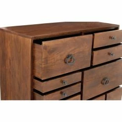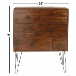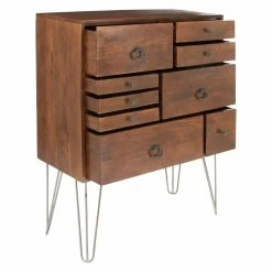 Keep a wide range of small items tucked away in the DecMode Decorative Chest. This dark brown albizia wood chest features nine drawers in four different sizes, each finished with an iron pull. Metal hairpin legs elevate and stabilize the chest.