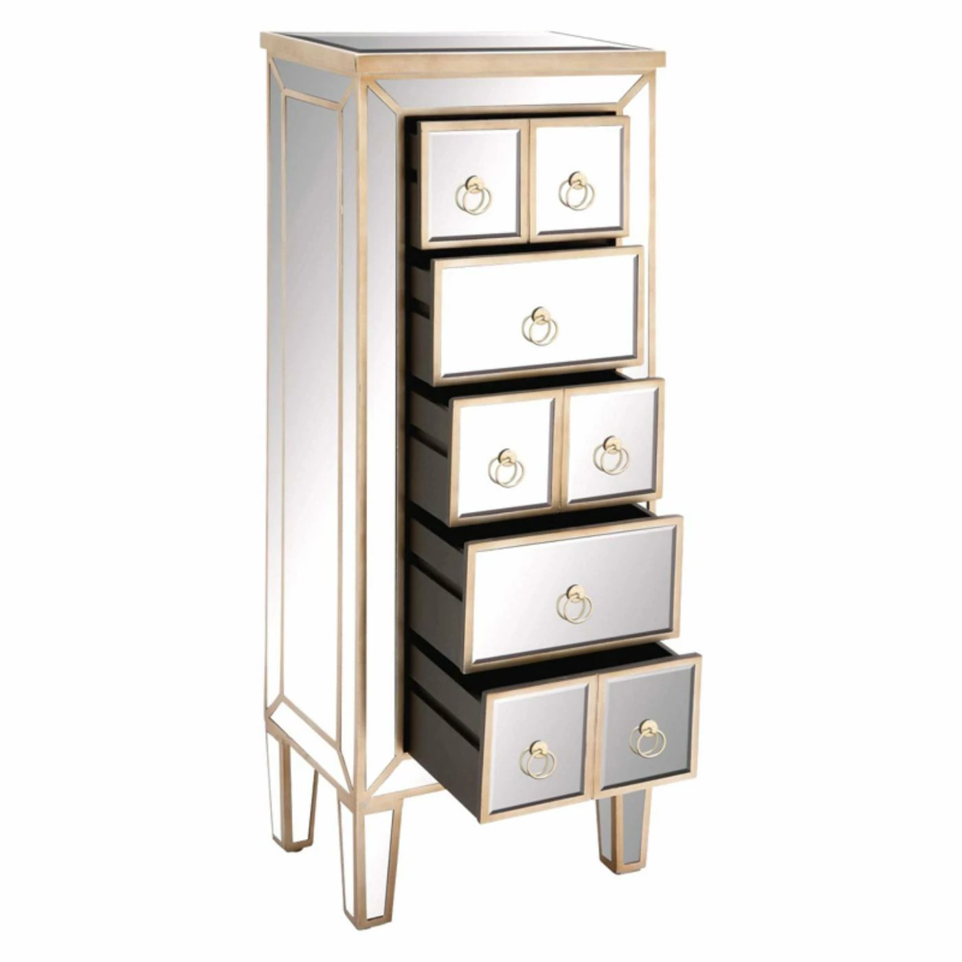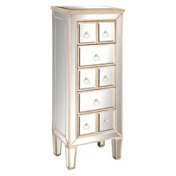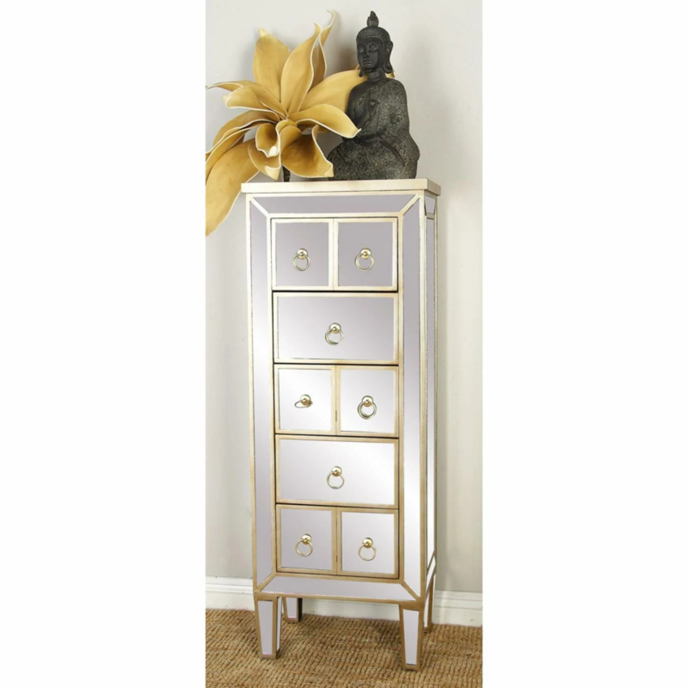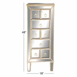 Bring a glamorous touch to your space when you store your things in the DecMode Mirrored Decorative Chest. This elegant piece boasts eight drawers, each with elegant loop pulls.