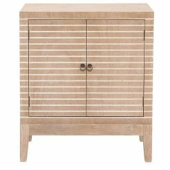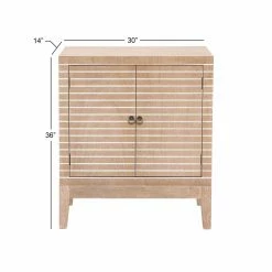 Stripes against a distressed wood grain finish give the DecMode Striped Wood Decorative Chest its contemporary appeal. As functional as it is fun, this decorative chest boasts two cupboard doors with ring pulls that open to offer ample storage space inside.