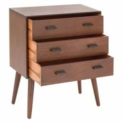 The simple, timeless design of the DecMode Wooden Decorative Chest with Drawers includes tapered and flared mid-century legs. Three roomy drawers with slim bar pulls make this decorative chest yours.