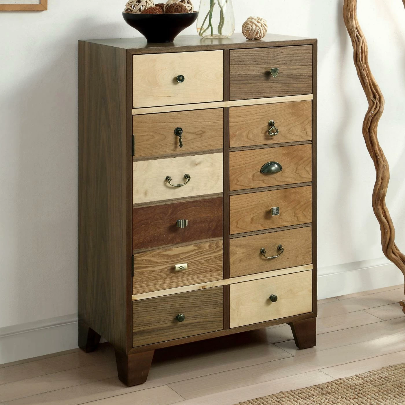 Give your home a fun, eclectic look with the Furniture of America Hartford Vintage Hallway Cabinet, boasting a myriad of drawers, each adorned with different hardware. This fascinating hallway cabinet is made of wood and rests on thick, angled legs. Each drawer front features a different finish that brings the piece a cheerful, unique aesthetic.