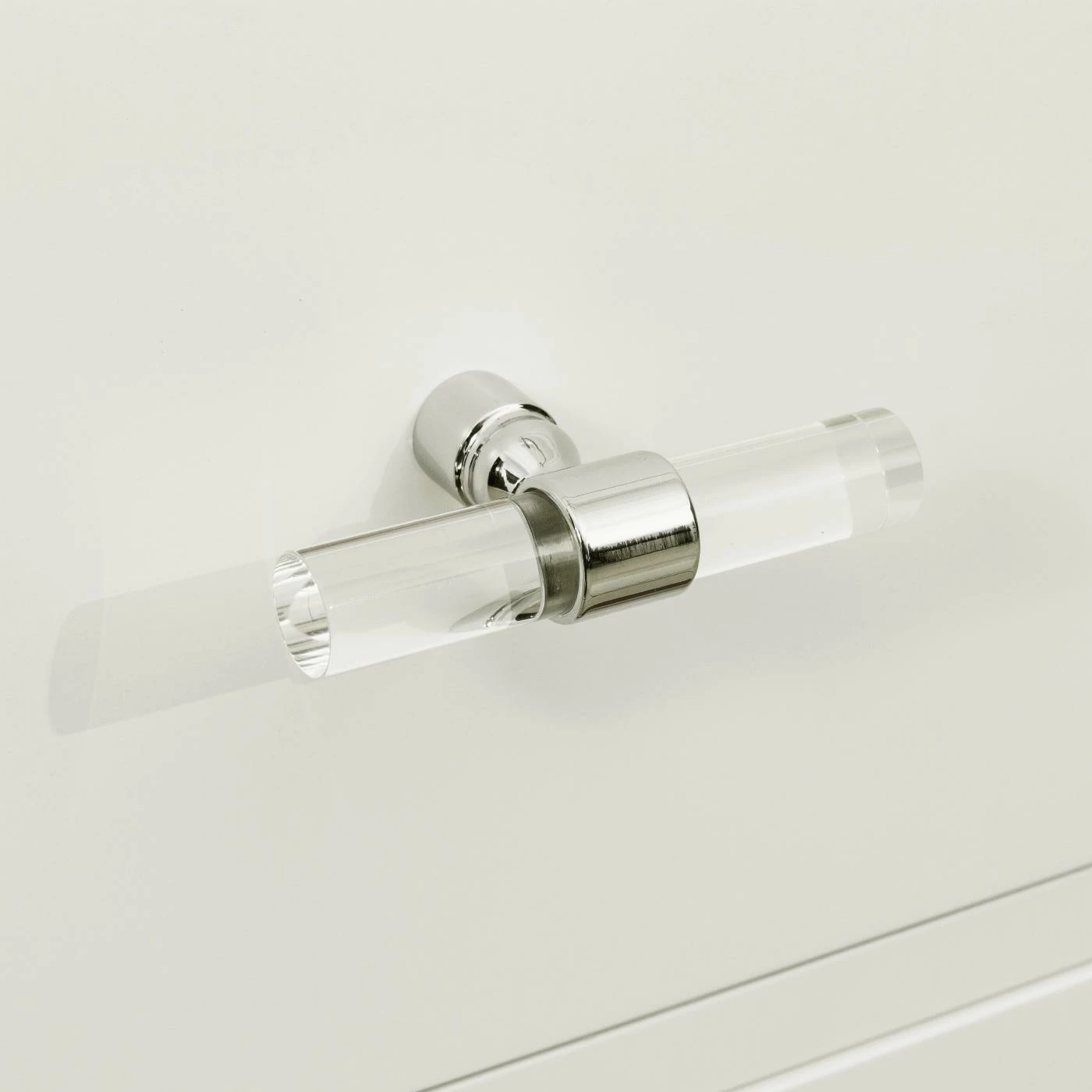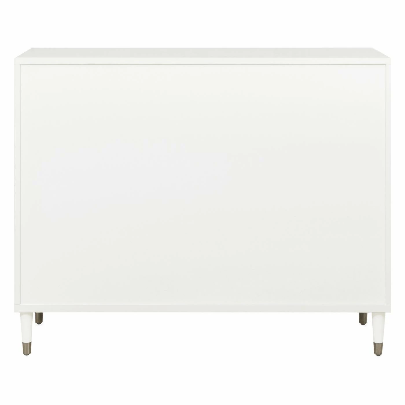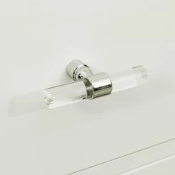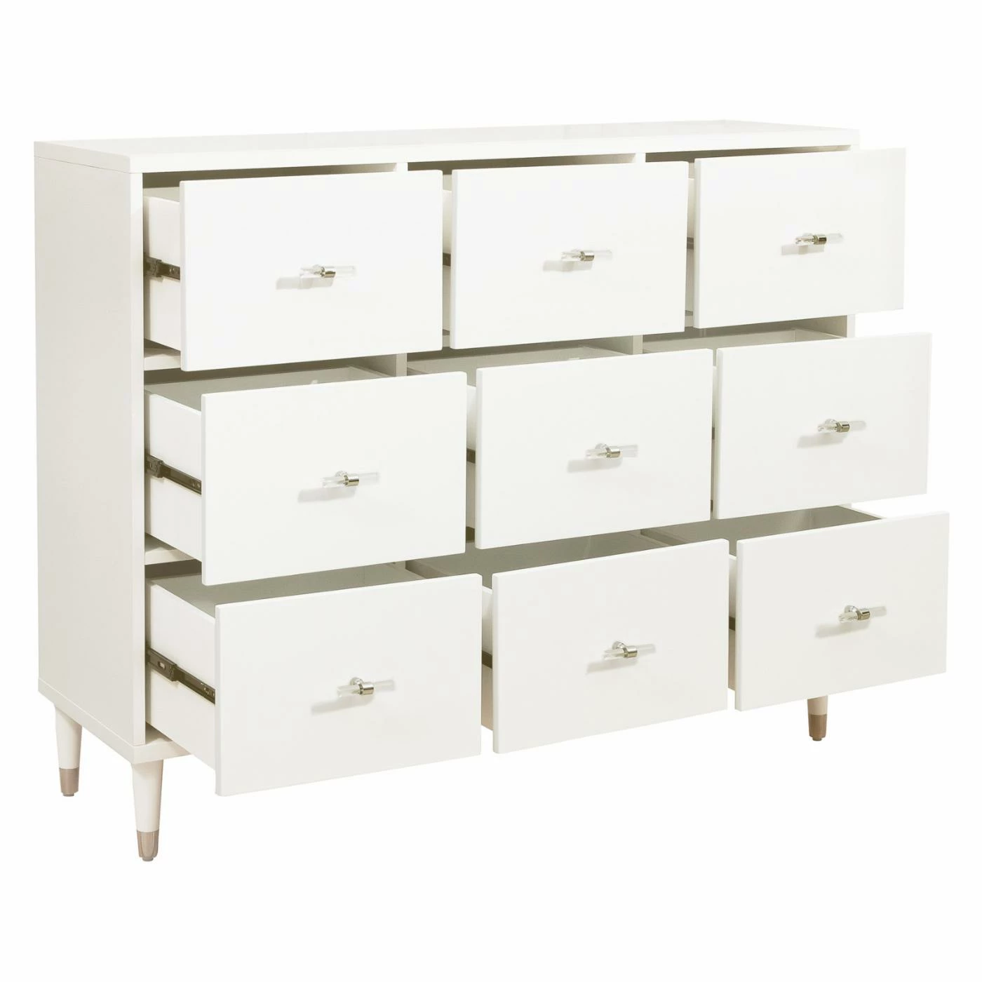 Taking decorative storage to another level is what the HomeFare White 9 DrawerΒ Accent ChestΒ does best. Featuring a clean-lined design and a fresh, white finish, this chest uplifts your living space with refined, modern style. Nine drawers offer generous storage, and each drawer is embellished with jewelry-esque polished nickel and acrylic hardware for a dash of contemporary elegance. Much like a well-accessorized outfit, the tapered legs of this chest are accented with polished-nickel-finished metal foot caps that match the hardware, for an immaculately coordinated concluding touch.