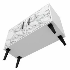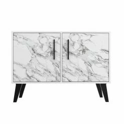 Storage comes in style with the Manhattan Comfort Amsterdam Mid-Century/Modern Marbled 2 Door Accent Chest. The marble design and sleek shape of this accent chest brings a stylish flair to any room. Suitable as a TV stand, media storage, or side table, this piece can fit anyone’s needs.