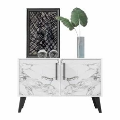Storage comes in style with the Manhattan Comfort Amsterdam Mid-Century/Modern Marbled 2 Door Accent Chest. The marble design and sleek shape of this accent chest brings a stylish flair to any room. Suitable as a TV stand, media storage, or side table, this piece can fit anyone’s needs.