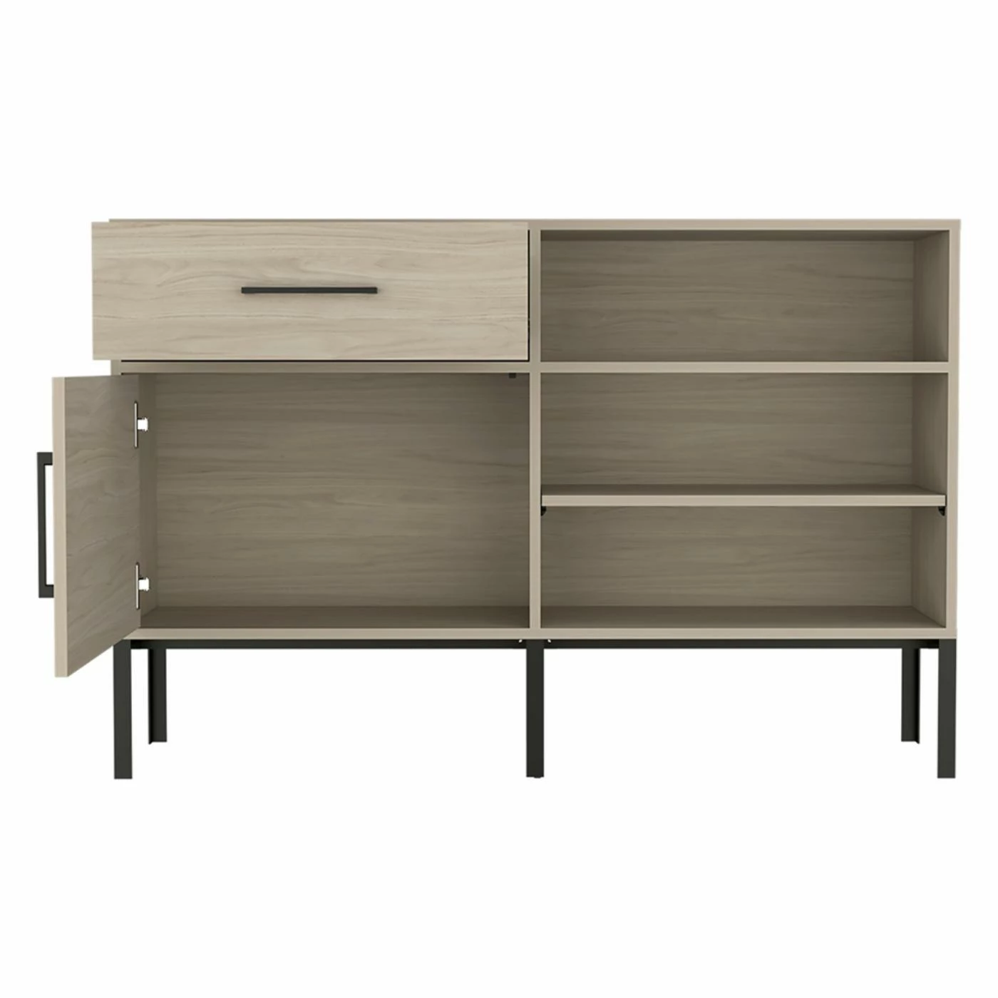 - Three Fixed & One Adjustable Storage Shelves