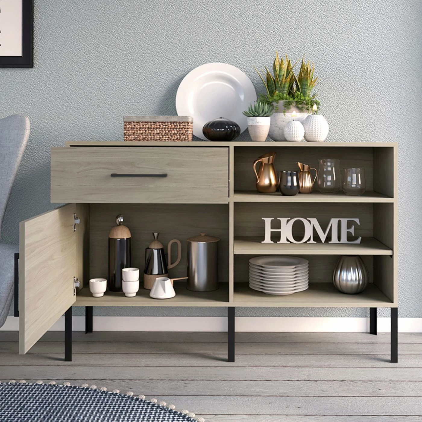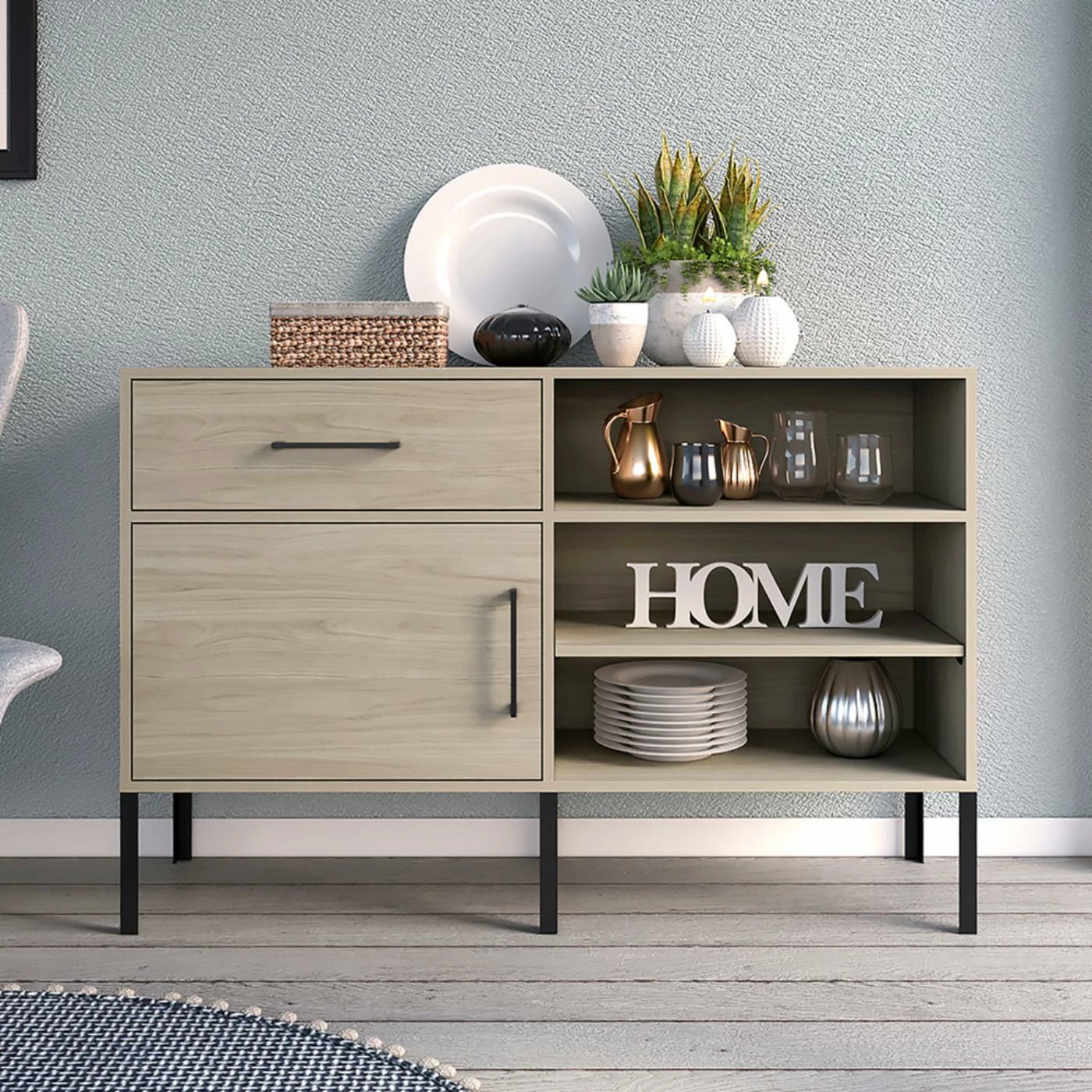 - One Door/ One Drawer Cabinet In Textured Laminate