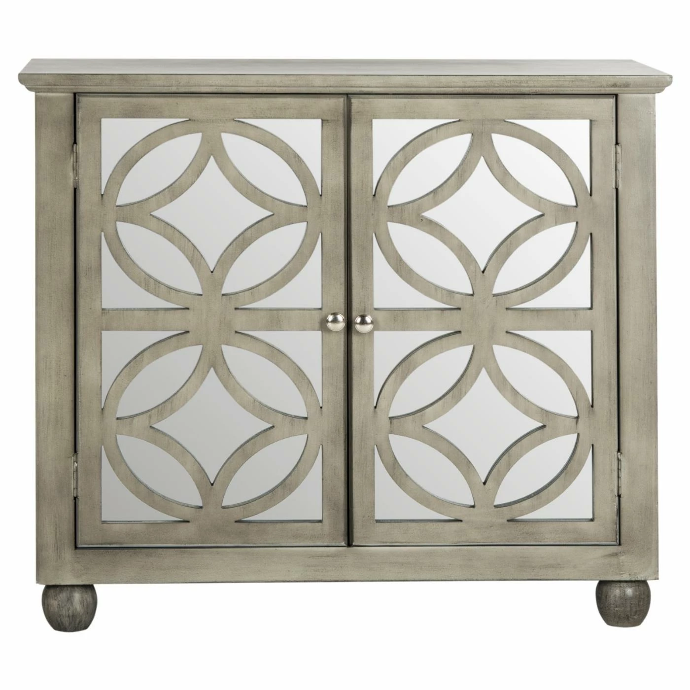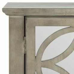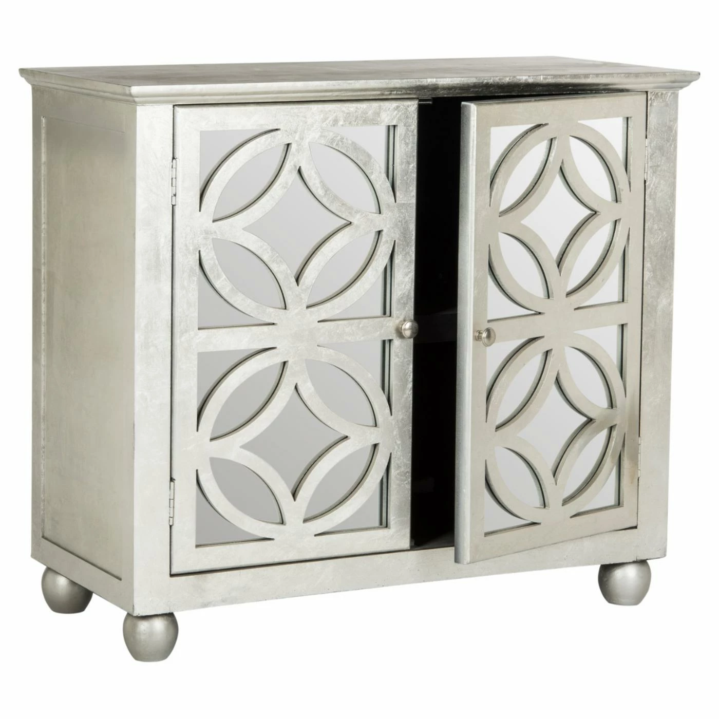 Lend a little shine to your transitional home with the Safavieh Havana Chest. Reflective, mirrored glass gleams from behind the geometric lattice on the chest’s double doors. Round ball feet support the solid fir and engineered wood chest and contrast with the clean, sleek lines of the boxy piece.