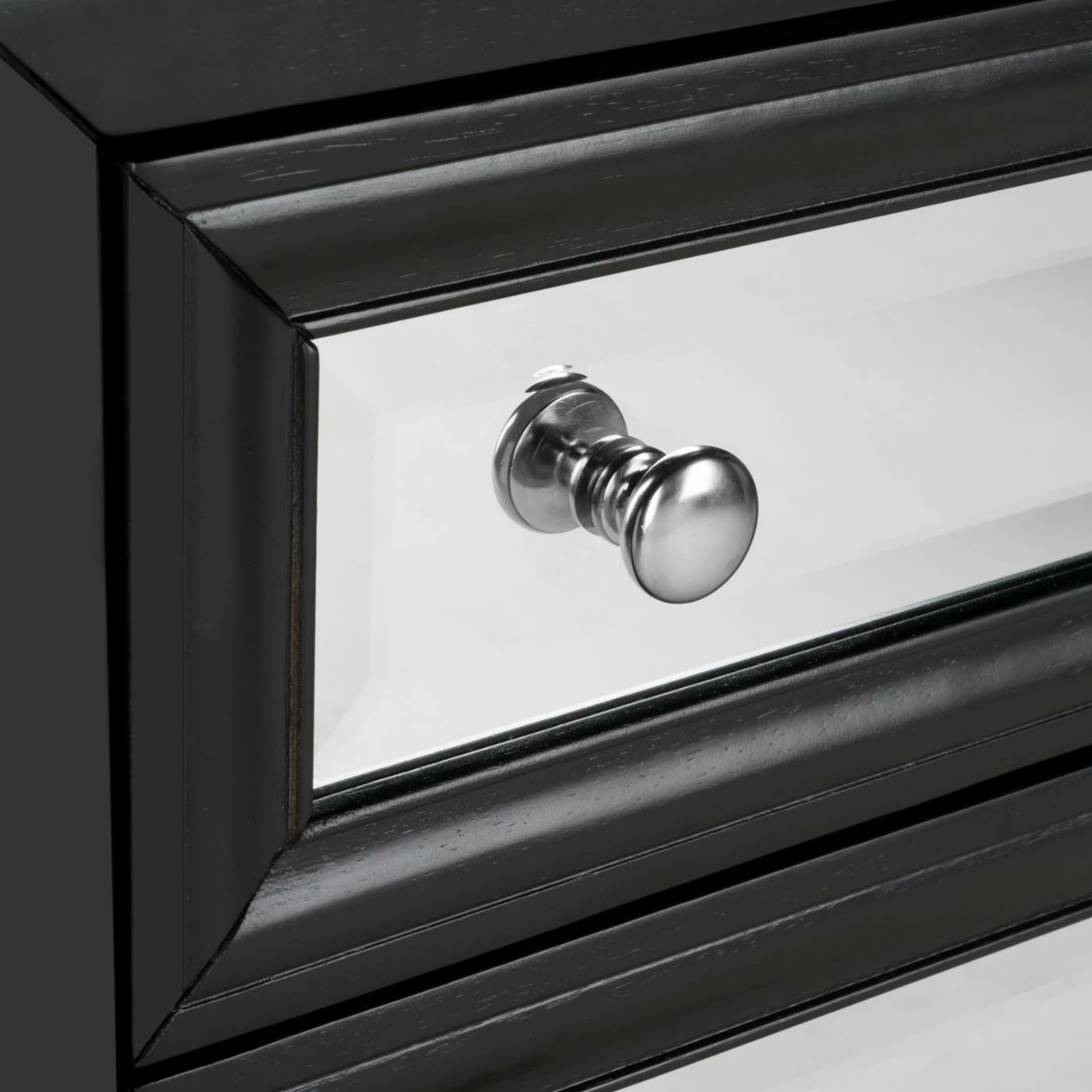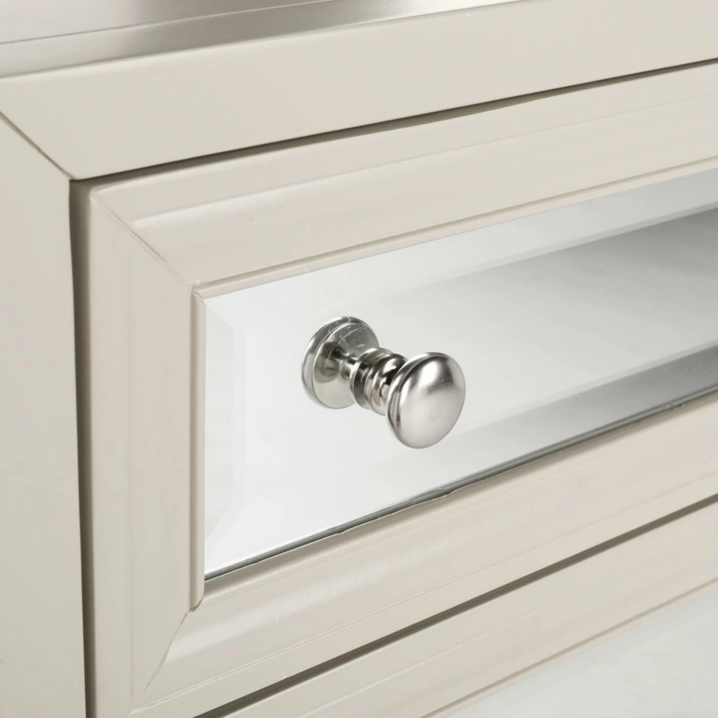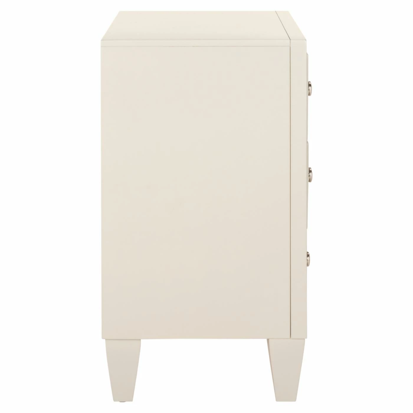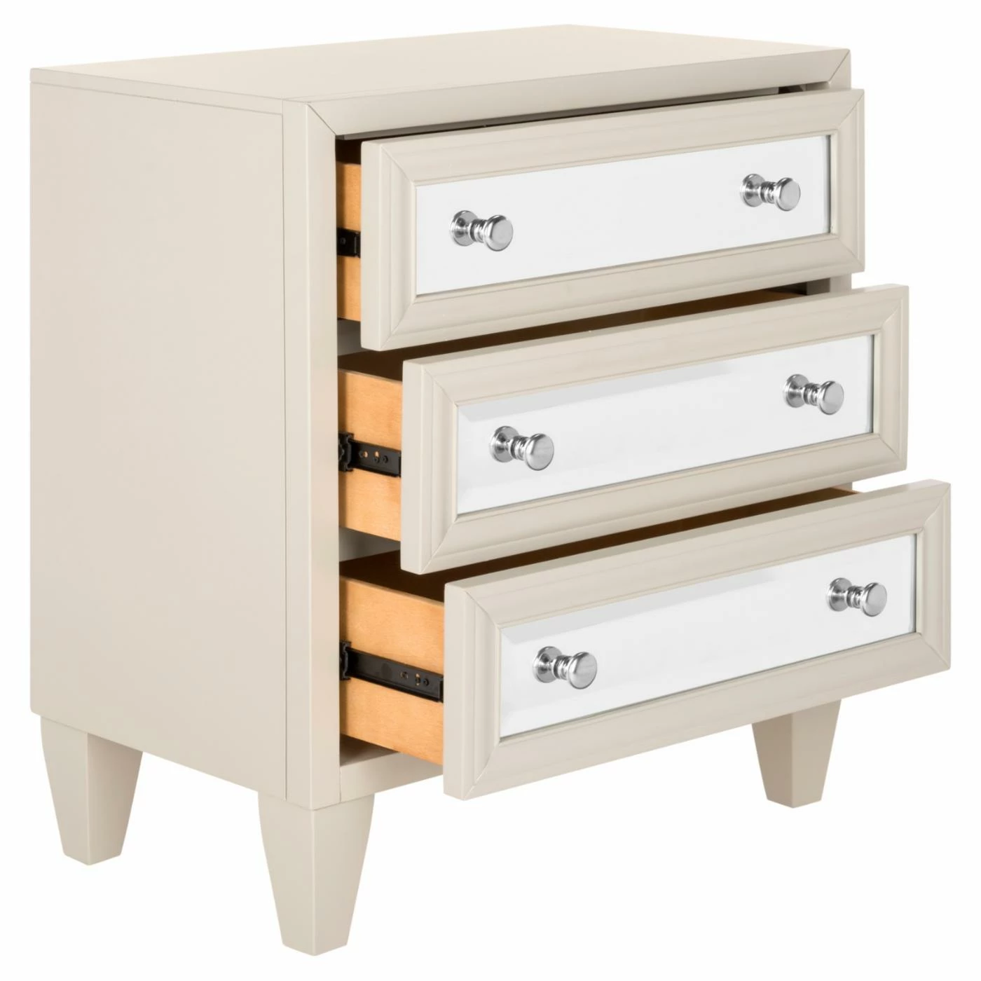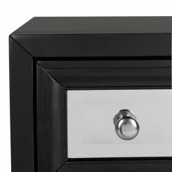 A little luxe glamour is reflected in the Safavieh Marlon 3 Drawer Chest. This versatile storage piece is crafted from durable rubberwood. Each one is graced with three mirrored drawer fronts finished with dual knobs. Pull open the drawers and stash clothing, books, and other treasures inside. Cleanly tapered feet elevate the look. Assembly is required.
