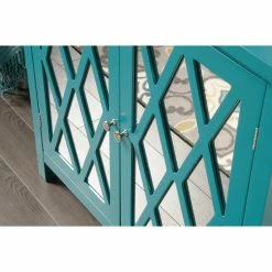 Add a bit of modern flair to your home with the Sauder Inspired Accents Decorative Chest. This fun and colorful chest features geometric and mirrored elements for eye-catching beauty. The adjustable shelf is concealed behind a door for storage of your miscellaneous items.