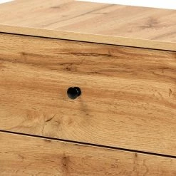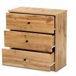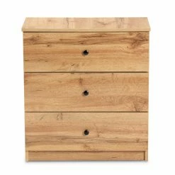Add a lovely accent of modern design to your space with the handy Decon storage chest. This chest is constructed from sturdy wood with a natural oak brown finish. Three spacious drawers provide ample storage space to organize and declutter busy areas of your home. Requiring assembly, the Decon features minimalist black finished metal drawer knobs to provide easy access while highlighting the natural wood grain of the chest. A beautiful addition designed to complement your current interior, the Decon storage chest enhances the feel of the modern home.