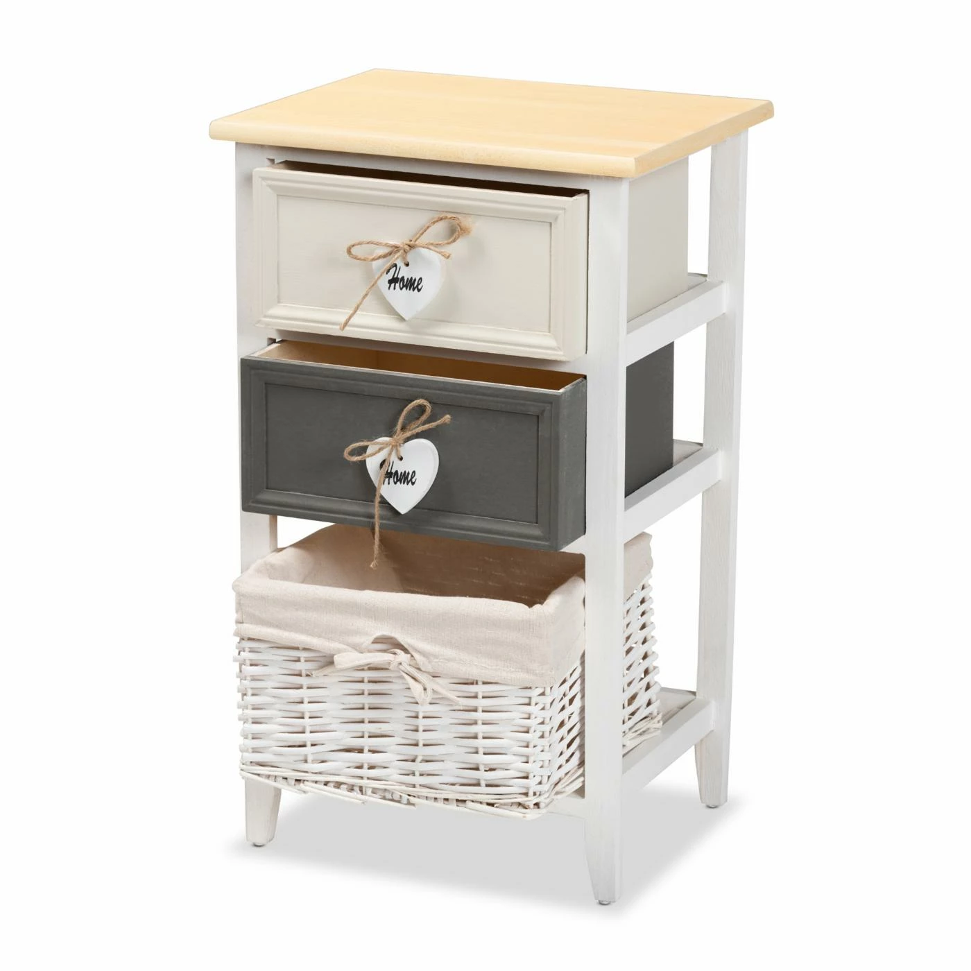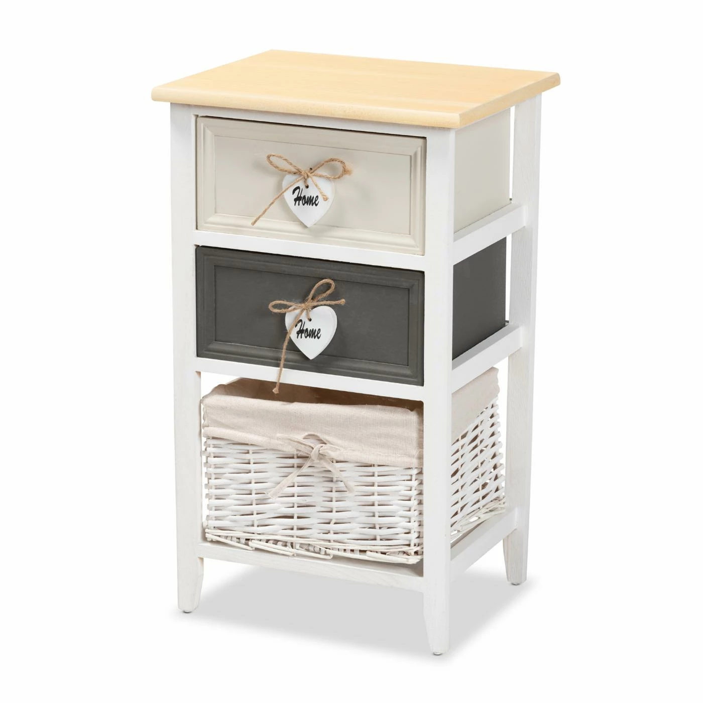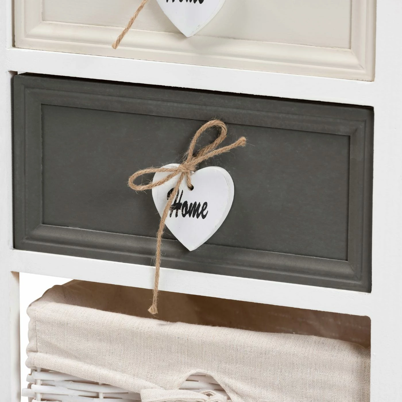 Establish a cozy, welcoming scene in your home with the charming design of the Diella storage unit. This unit is comprised of a lightweight wood frame fitted with a woven basket. Two drawers offer convenient household storage while the basket serves as a pleasant display for larger items. Comes fully assembled, the Diella is adorned with heart-shaped drawer pulls for a unique, chic appearance that channels contemporary design. Providing modern convenience in delightful style, the Diella storage unit is a wonderful addition to any space.