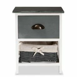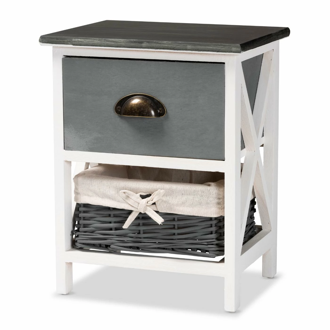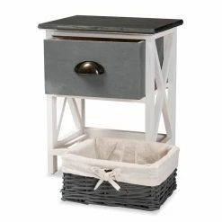 Update the layout of your bedroom with the refreshing design of the Garridan unit. This unit is comprised of a lightweight wood frame fitted with a woven basket. One drawer provides covnenient, on-hand storage, while the basket supports larger items. Comes fully assembled, the Garridan features a crisscross design on its side for a sleek, geometric display. The smooth metal drawer knob adds an industrial touch, making the Garridan storage unit a remarkable addition to any space.