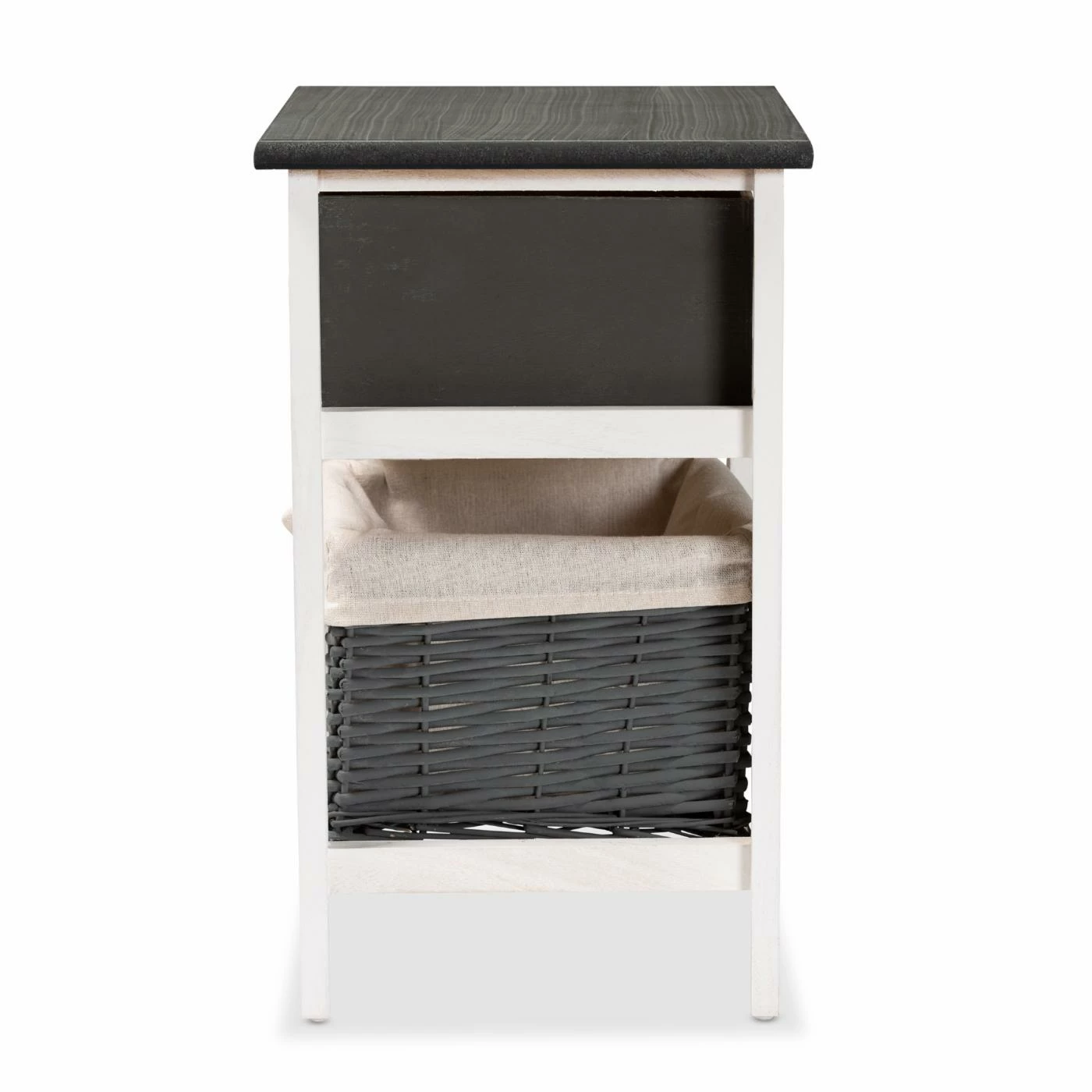 Add a touch of urban charm to your room with the especially versatile Shadell storage unit. This unit is comprised of a lightweight wood frame fitted with a woven basket. One drawer provides secure storage for household essentials, while the basket supports larger items. Comes fully assembled, the Shadell features inset paneling on its drawer face a sleek, contemporary display. Offering modern convenience in chic design, the Shadell storage unit elevates any space.