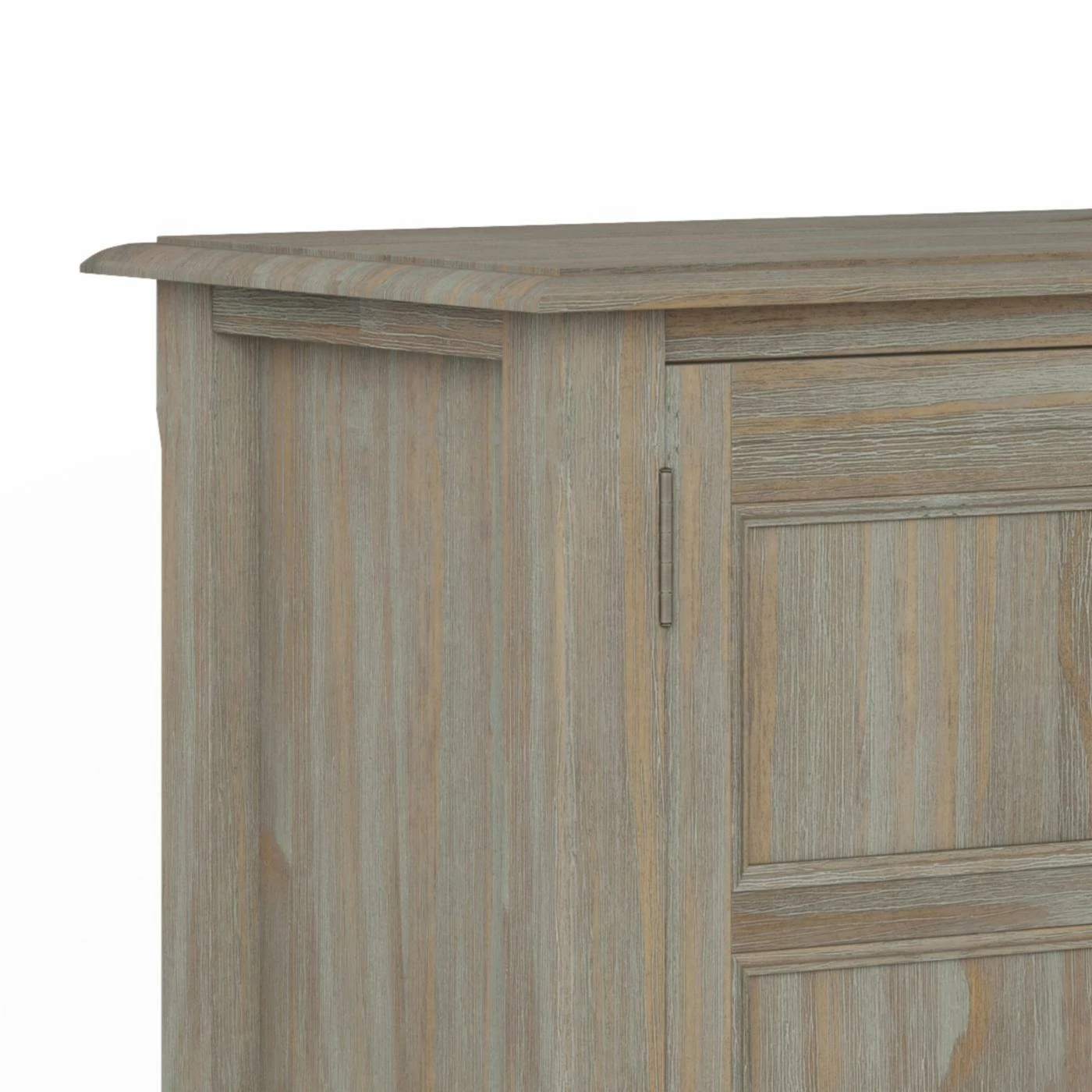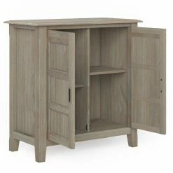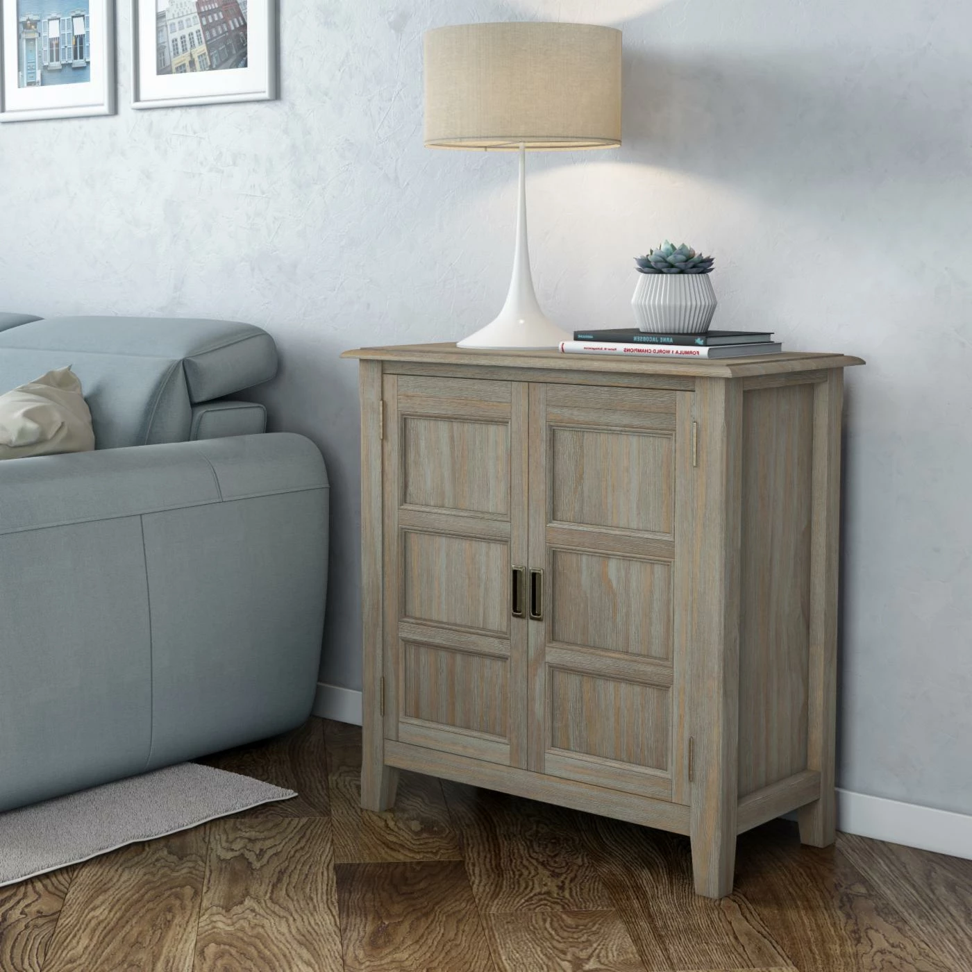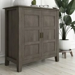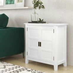 Consider the Brooklyn + Max Berkshire Solid Wood 30 in. Traditional Low Storage Cabinet when you need more storage options in your home dรฉcor. Made of engineered wood and pine, this cabinet features an antique look. Behind double doors, you’ll find four cubby shelves of complementary sizes. Assembly is required.
