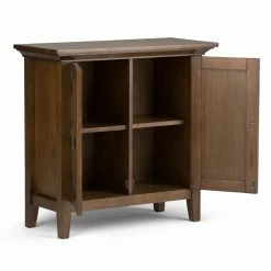 The Brooklyn + Max Stanwick Solid Pine Wood 2 Door Storage Cabinet is a sleek storage solution for any room in your home. Two solid pine doors offer exceptional durability, and shelves on the inside of the chest easily adjust, providing flexibility of space. A divider in the middle means there are four separate storage spaces to keep everything organized. This chest is constructed of wood, and the natural beauty of the grain is highlighted by the protective NC lacquer finish.