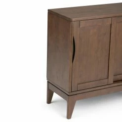 For stylish storage in any room, choose the Brooklyn + Max Thompson Solid Hardwood Sliding 2 Door Storage Cabinet. This handy storage cabinet features a rich walnut brown finish. It’s handcrafted of solid rubberwood. Interior storage and two adjustable shelves are located behind two sliding notched handled doors.