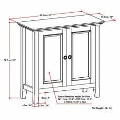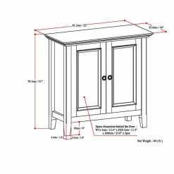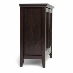 The classic style of the Brooklyn + Max Washington Pine Wood 2 Door Storage Cabinet is a dapper way to stash and store anything and everything that you wish. Inside the paneled design of this handsome two-door cabinet lives one adjustable shelf per side for customizable storage. Handcrafted and hand-finished, this cabinet touts a rich brown stain as well as a protective coat of lacquer that adds to the unique appeal of the wood grain. The molded top, paneled front, and gently tapered legs are icing on the cake, and the antique pewter-finished hardware is the proverbial cherry on top.