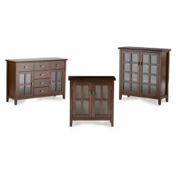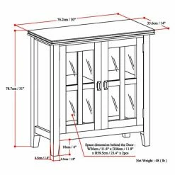 Keep your china, decor, or anything else organized with the Brooklyn & Max Holden Wood 30 in. Wide Contemporary Low Storage Cabinet. This piece features two tempered glass doors with bronze knobs. Behind the doors are two adjustable shelves to customize your storage needs.