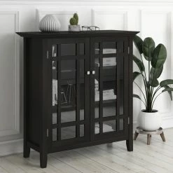 Clutter and mess can seem like an unsolvable problem. It is for this reason we designed the Brooklyn & Max Hampton Medium Storage Accent Cabinet. 2 tempered glass doors open to 4 adjustable shelves allowing you to reconfigure the layout to suit your needs. Display your fine china, decorative accents or even movies on dedicated display space for a clean, distinctive look.