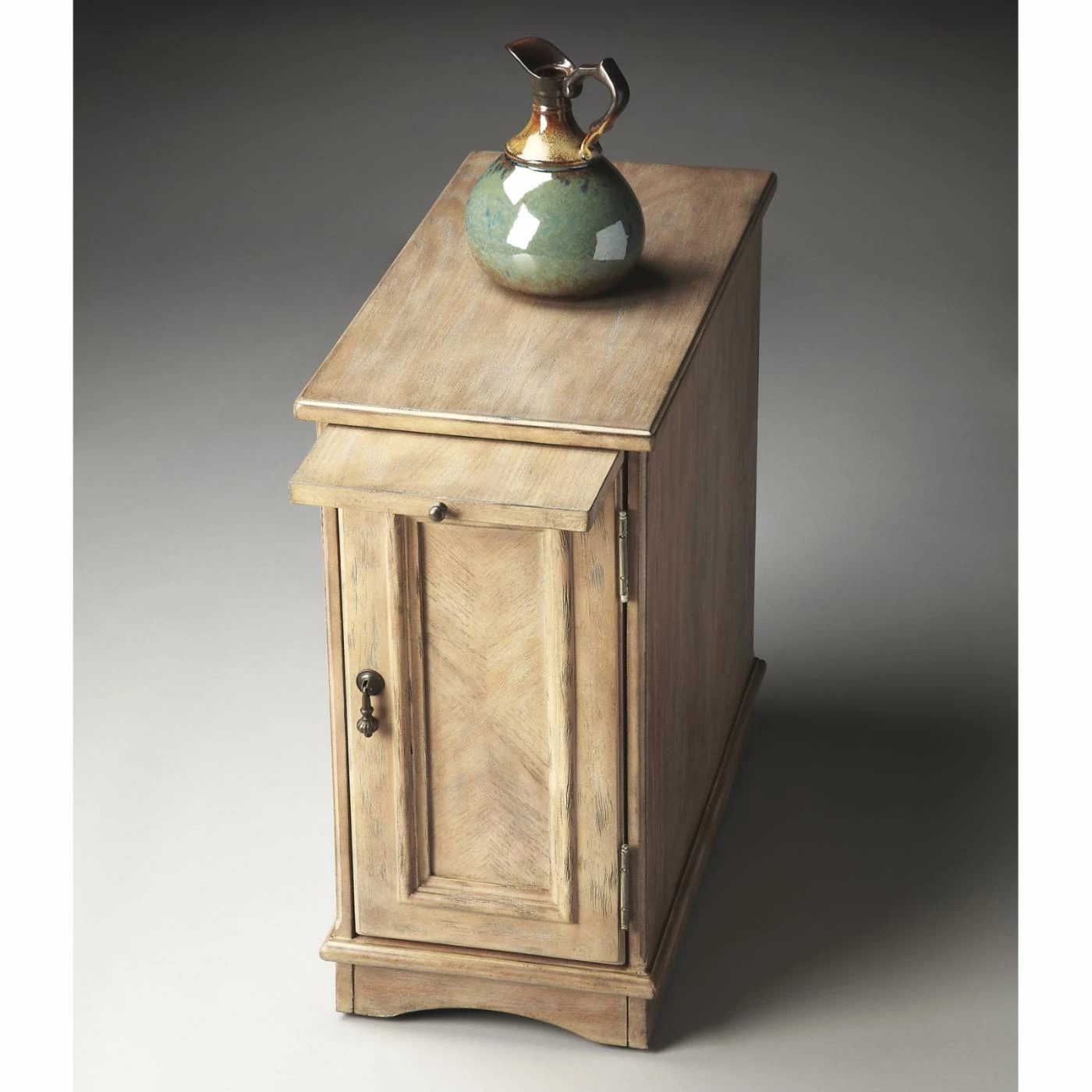The Butler Chairside Chest β Driftwood is a modern piece that brings great storage and style to your home. This chest works great in small spaces as an end table or extra storage that doesn’t take up lots of floor space. The convenient pull-out tray gives you extra space while the cabinet houses an adjustable shelf for storage. Tuck away remotes, books, or whatever you don’t want cluttering up your room. A beautiful neutral driftwood finish adds subtle beauty without taking away from your dΓ©cor.
