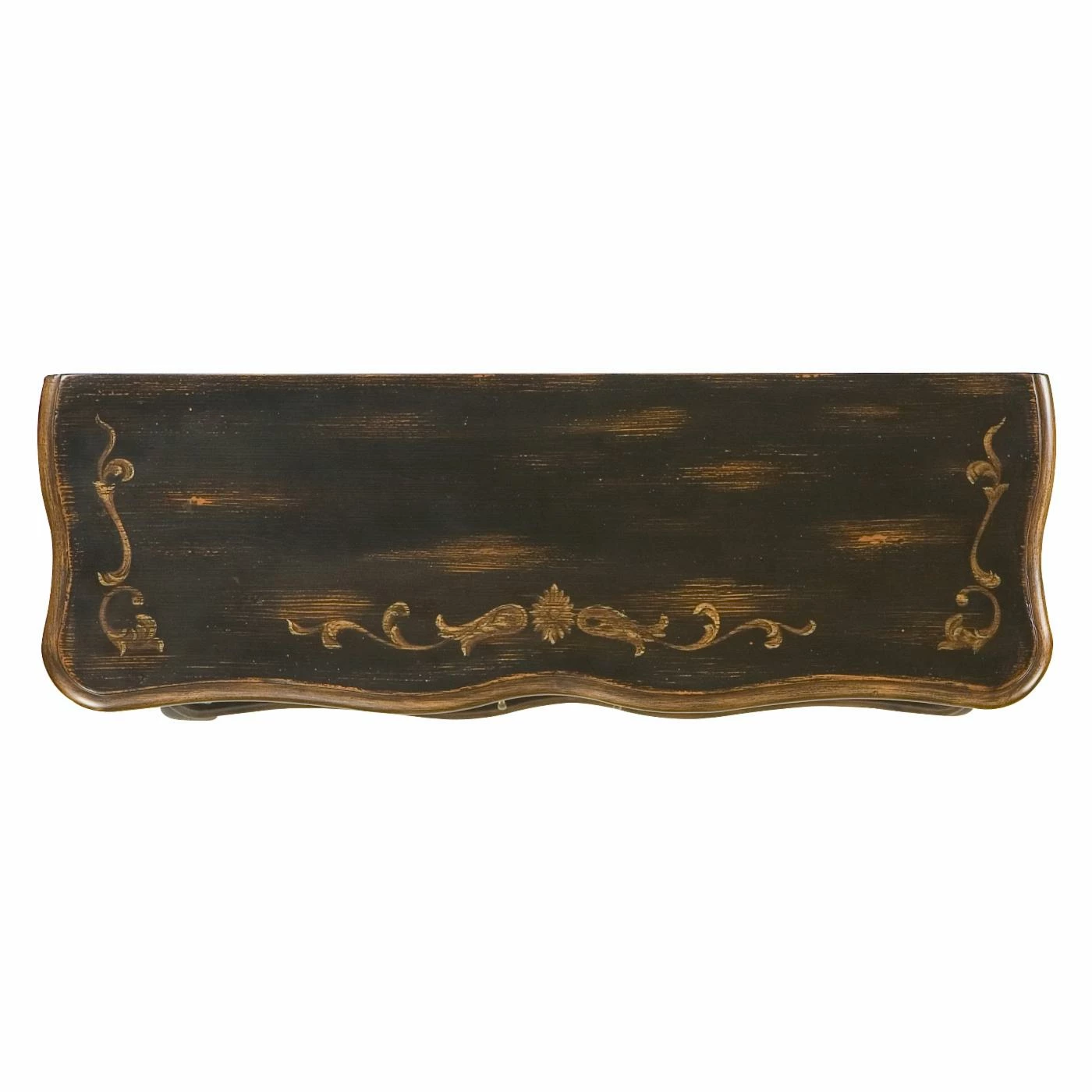 The Butler Console Chest – European Black will become your favorite statement piece of furniture. Made with selected hardwoods and wood products, this beautiful chest features two storage doors with a hand-painted design and antique brass-finished hardware. Dimensions: 36W x 12D x 32H inches.