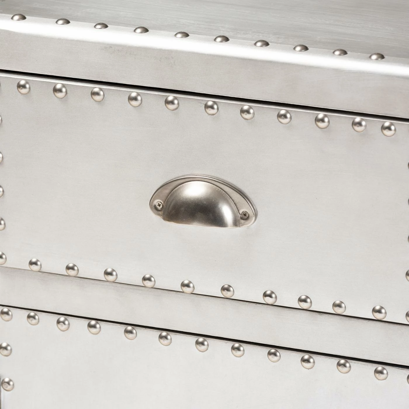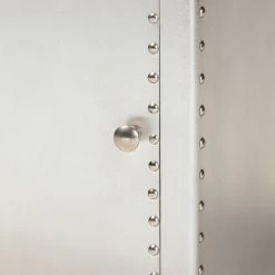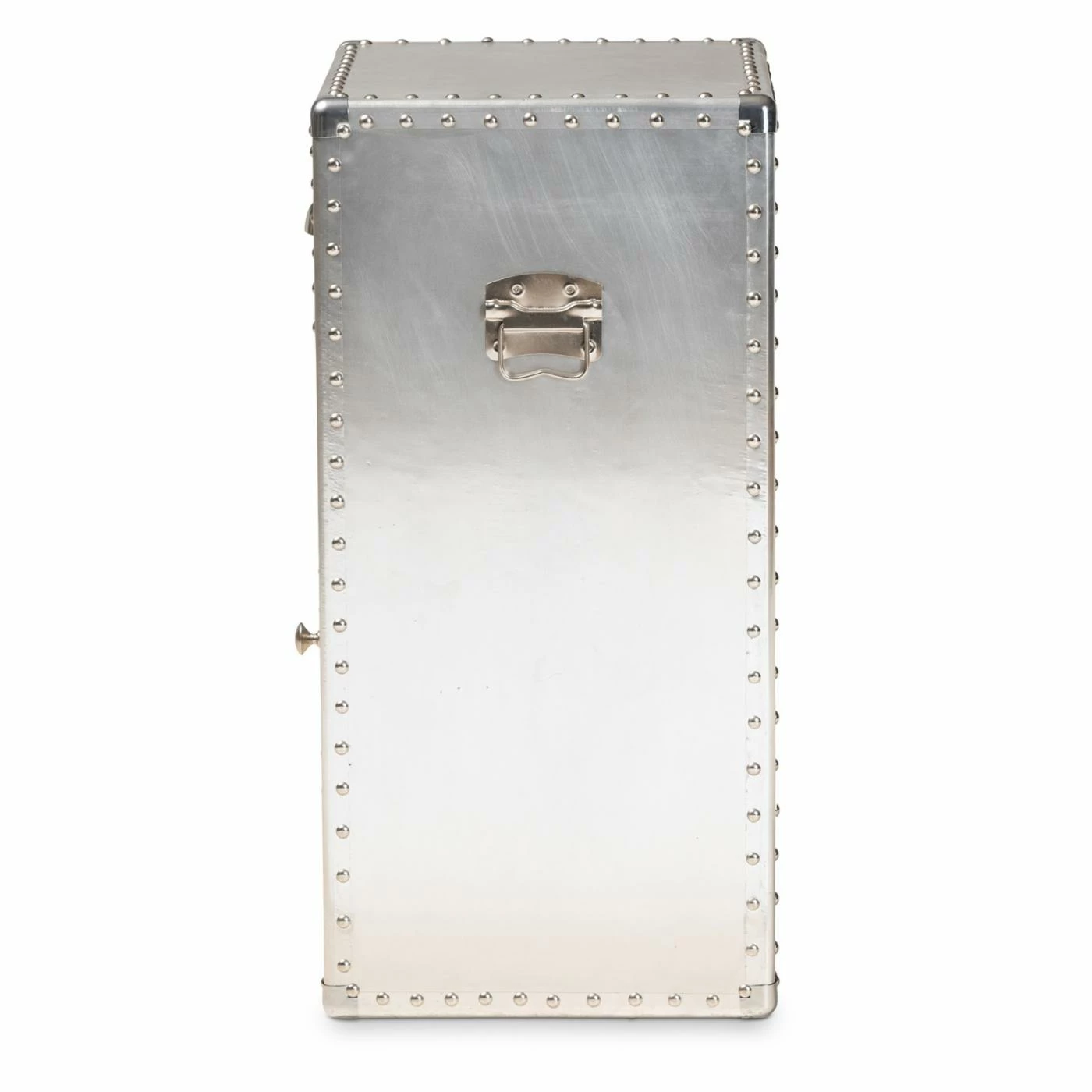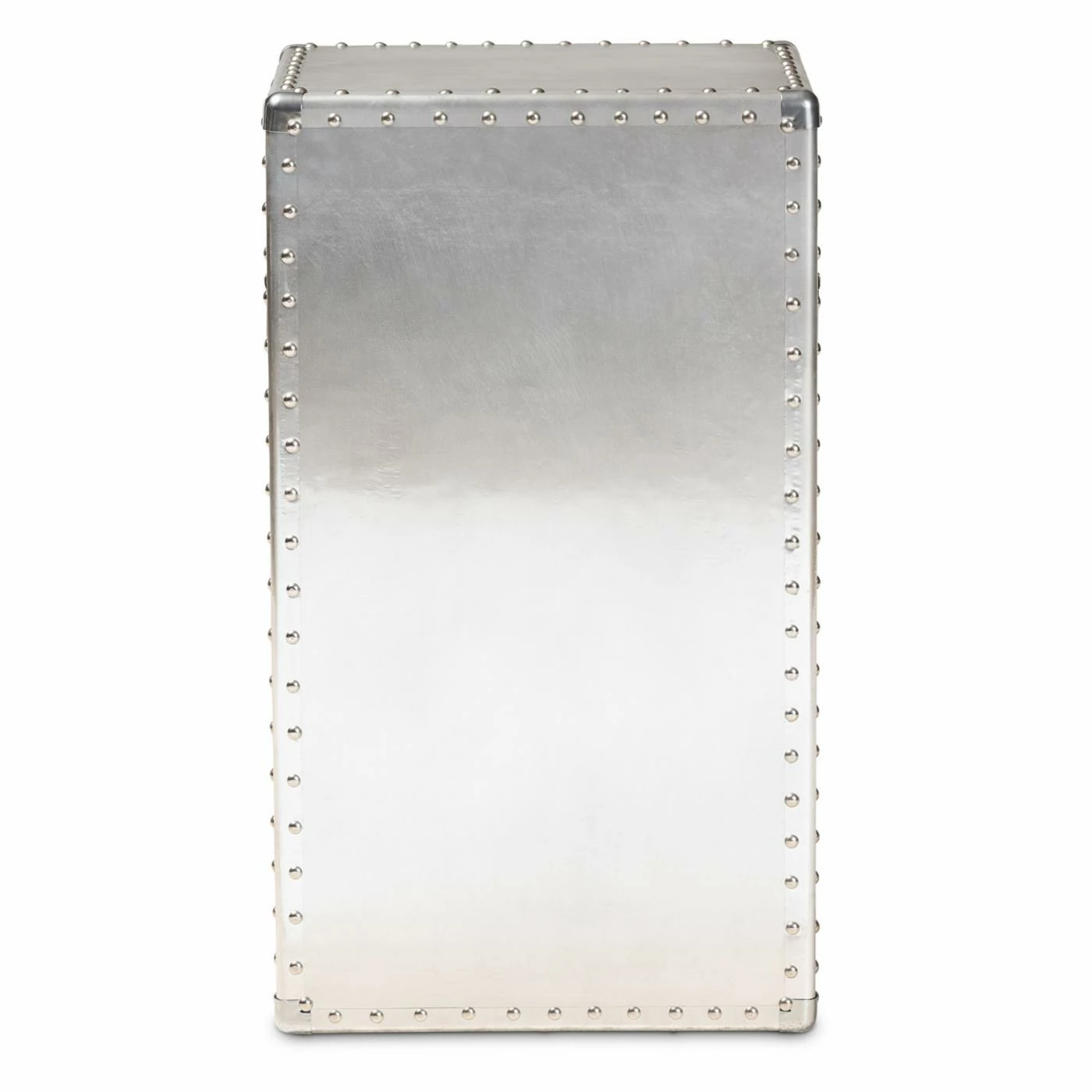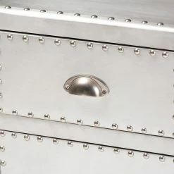 Inspired by vintage designs, the Baxton Studio Serge French Industrial 1 Door Accent Storage Cabinet is in a glam silver finish. Constructed of metal, this storage cabinet has one drawer and one cabinet for closed storage. Rivets and silver handles add an industrial touch, and the corner protectors evoke the image of old storage trunks. Style this piece as a nightstand or end table as an unexpected twist.