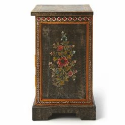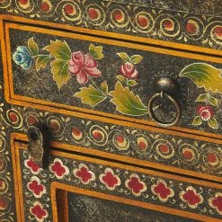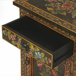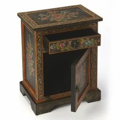 The extent of what could be housed by the Butler Specialty Bihar Hand Painted Accent Chest is limited only by imagination. Crafted from engineered wood with meranti veneers, this decorative chest exudes the feeling of finding an antique treasure. Whatever could be stored in the single drawer or lower cabinet with door is only for you to know. Both the drawer and door lock, so that its contents may be kept in your heart. The floral design was hand-painted, adding one more layer of unique preciousness to your new decorative chest.