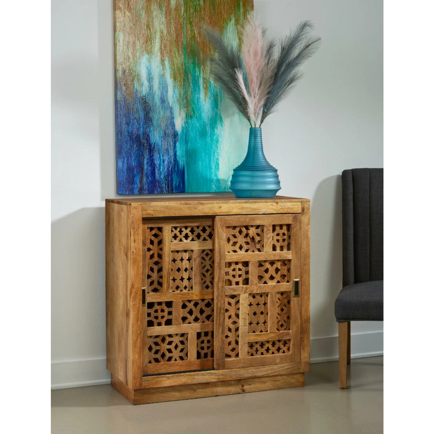 - 2 Sliding Doors with Hand Carved Fretwork