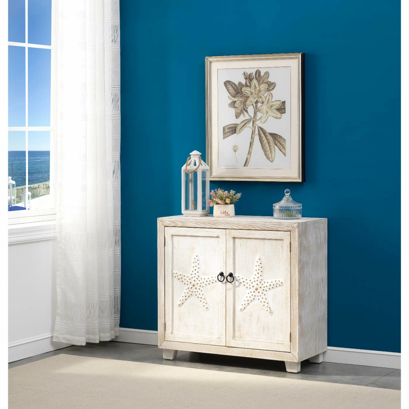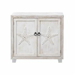 Keeping it light with a Stars of the Sea Two Tone finish, and playful with large raised starfish on the two door fronts, the Coast to Coast Wonders of the Sea 2 Door Accent Cabinet is an ideal addition for your sunroom or to freshen up your guest bath. A roomy shelved interior is perfect for those extra towels and toiletries, and the spacious top would look great with a bowl of colorful shell soaps, some scented candles, lotions and oils!