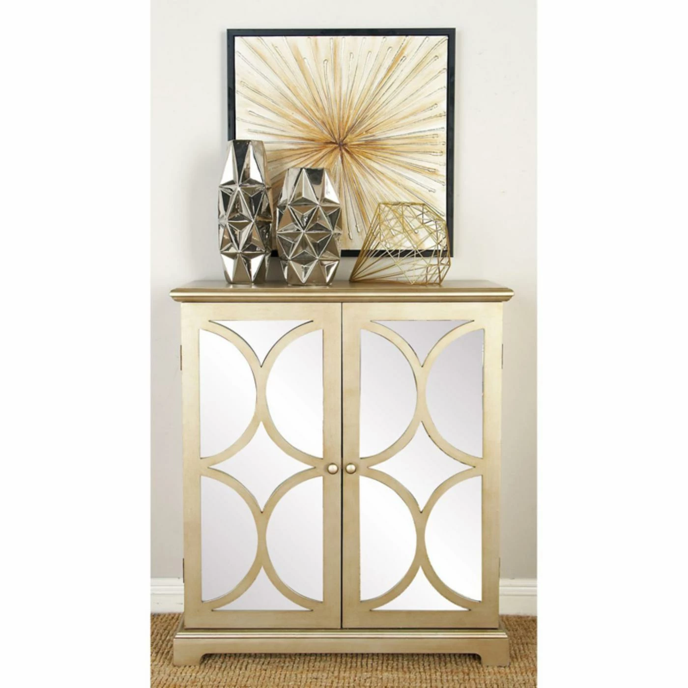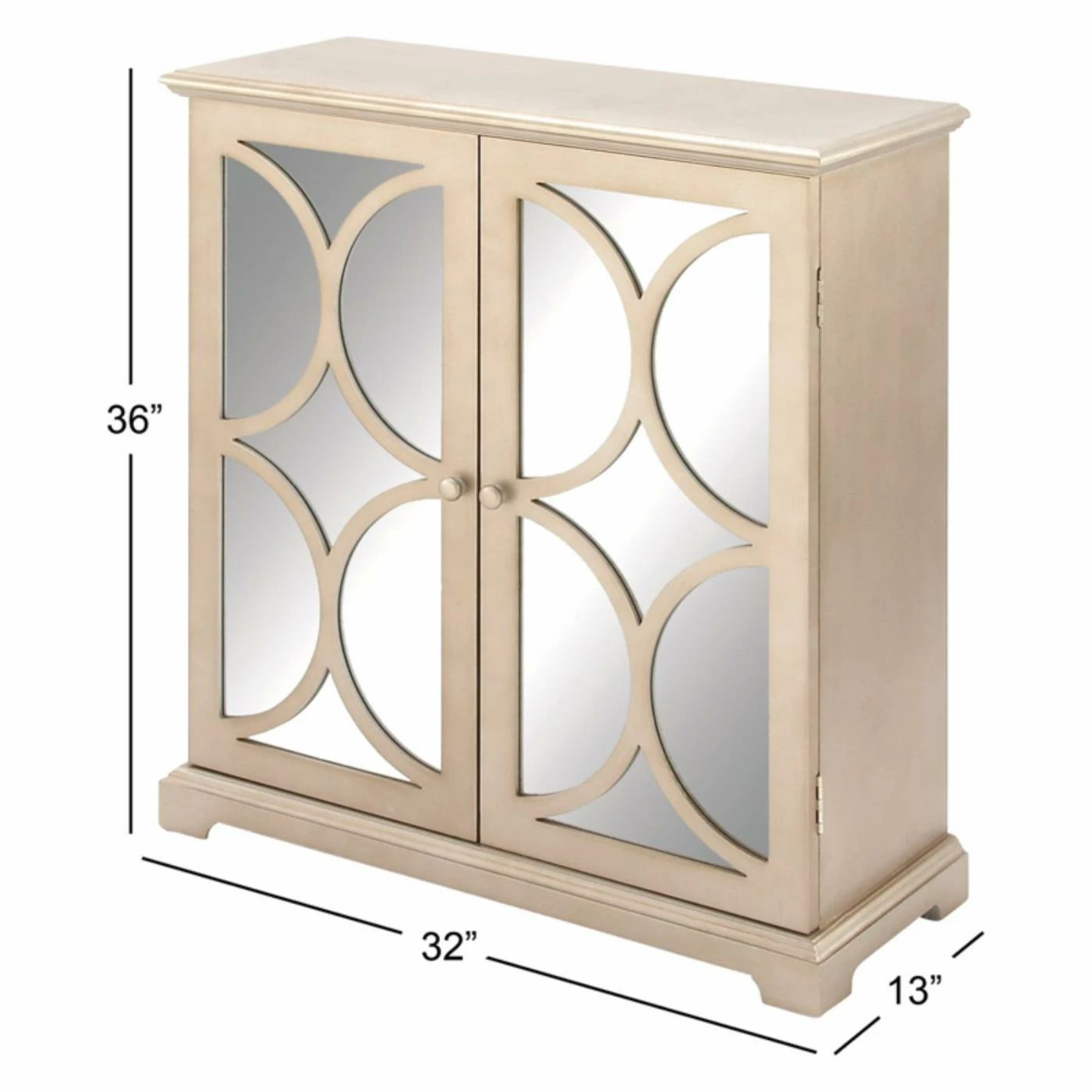 - 2 cabinet doors with mirrored accents