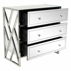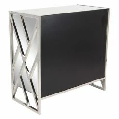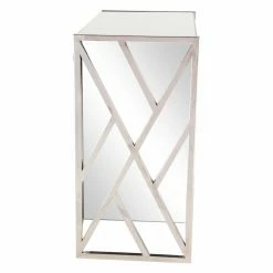 - Console features its stainless steel frame sides designed with geometric line patterns