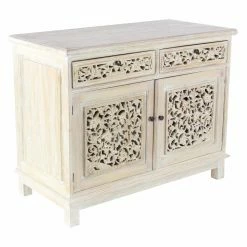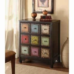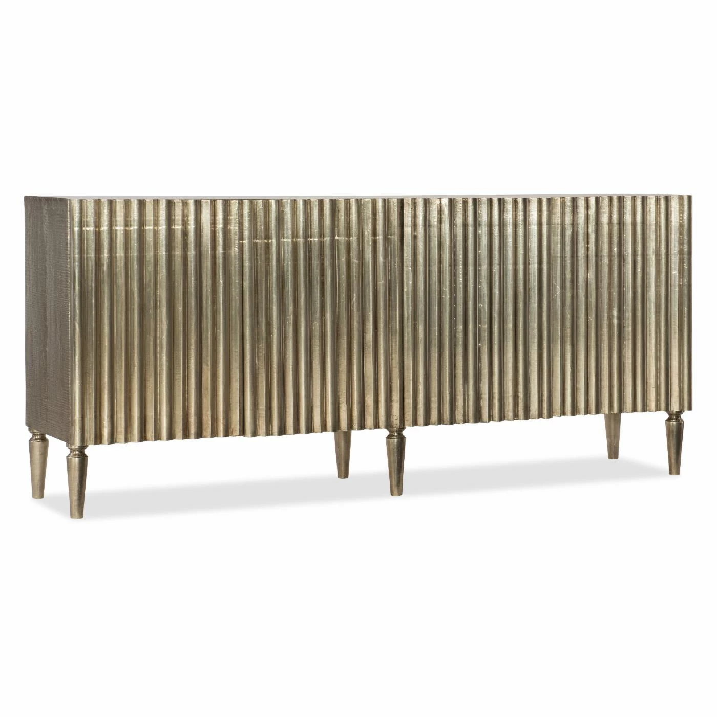 A corrugated look and rich German silver foil finish give the Hooker Furniture German Silver Console Table its industrial glam vibe. Two fixed, removable wood shelves are tucked behind the four push-latch doors in this console table. It’s elevated on tapering wood legs. This console table is scaled tall, slim, and wide to fit your entryway, hall, or for use in the living room.
