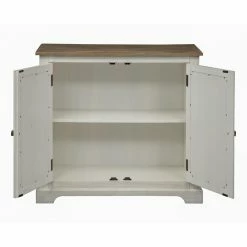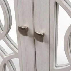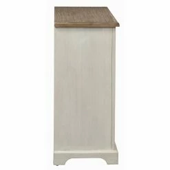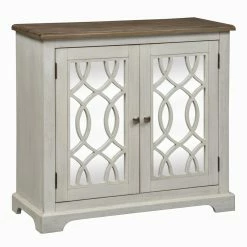 With elegant lines and rich colors, the Liberty Furniture Industries Alpine 2 Door Mirrored Accent Cabinet provides stately, vintage-inspired storage for your hallway, foyer, or living room. This accent cabinet is finished in creamy antique white on the base and weathered brown on the top. Dual doors open fully to reveal the roomy interior, bisected by an adjustable shelf to keep your organized. Antique mirrored panels inset the doors and are covered by a trellis pattern.