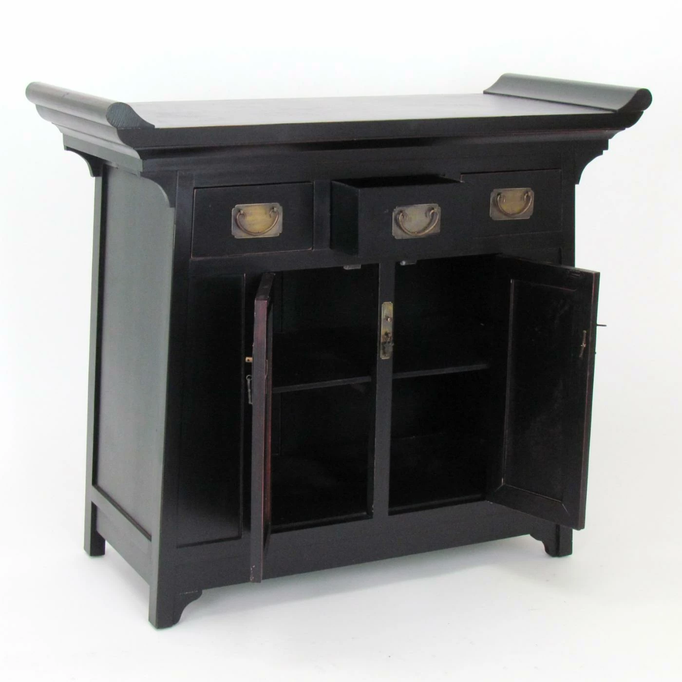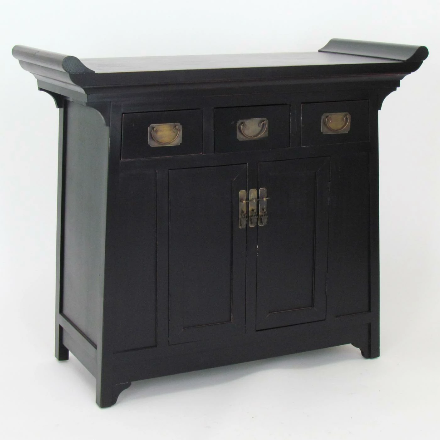 Add sleek style to your decor with the Wayborn Alter Cabinet. This piece features lines that are reminiscent of exotic Far East designs, and a curved top that draws the eye.