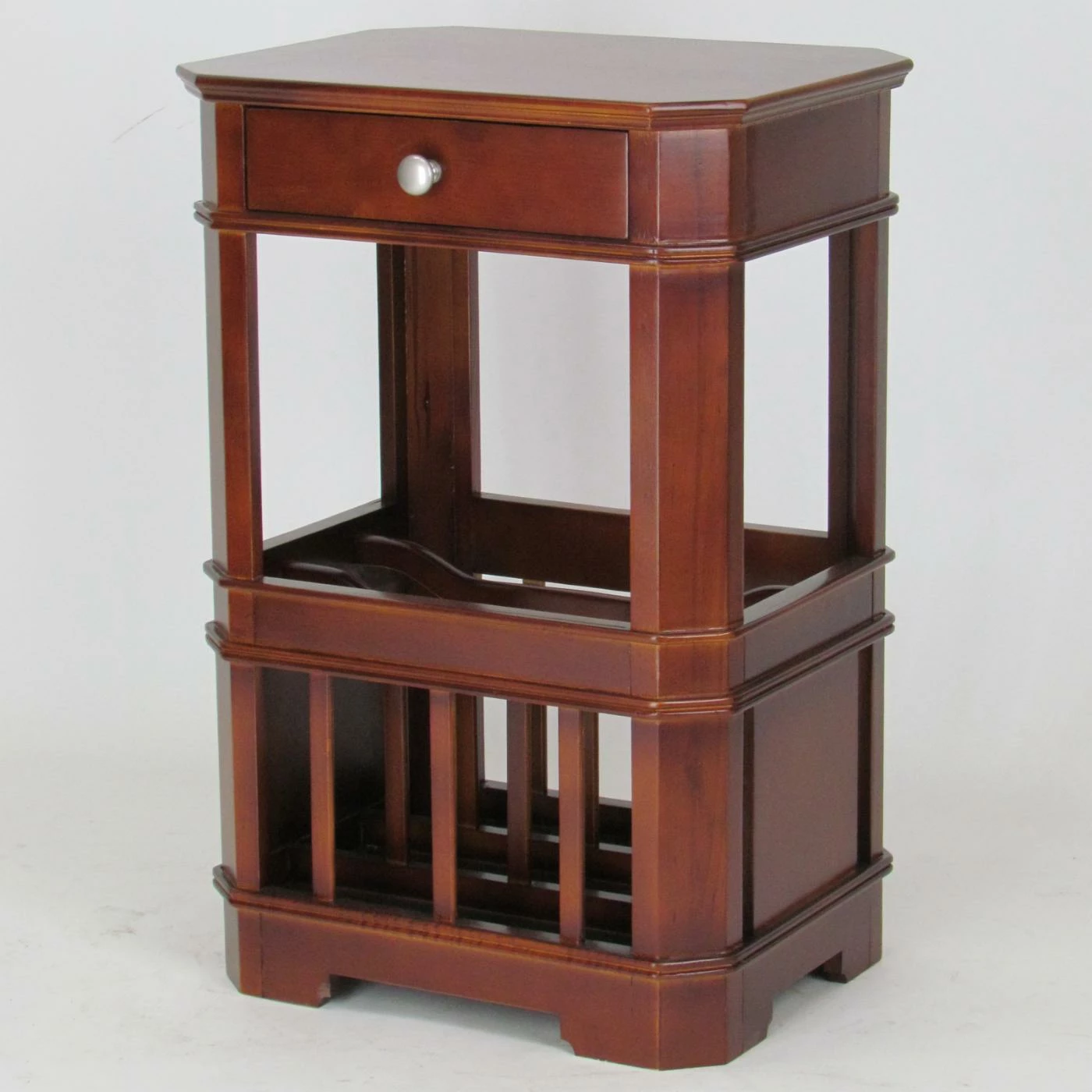 Organize your interior space with the Wayborn Magazine Cabinet. With the feel of fine antique furniture, this cabinet offers storage space both inside, and in the form of open racks on its sides.