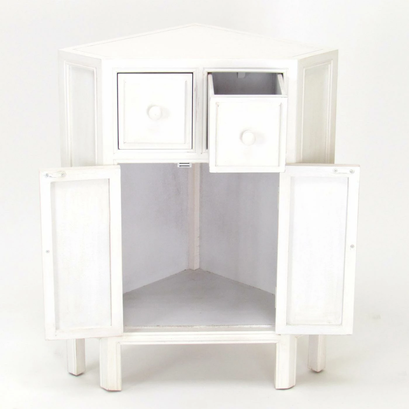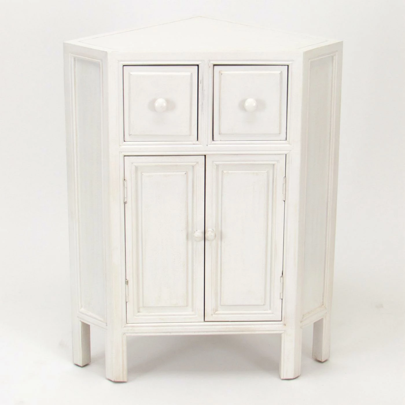 Slender lines and a clever corner design make the Wayborn Suchow Corner Cabinet a fine addition to your decor. The doors and two drawers make the most of this space-saving unit.