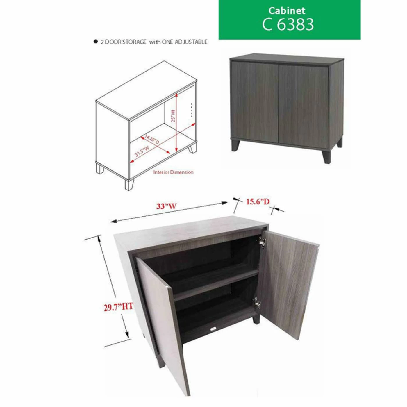 - Dimensions: 33W x 16D x 30H in.