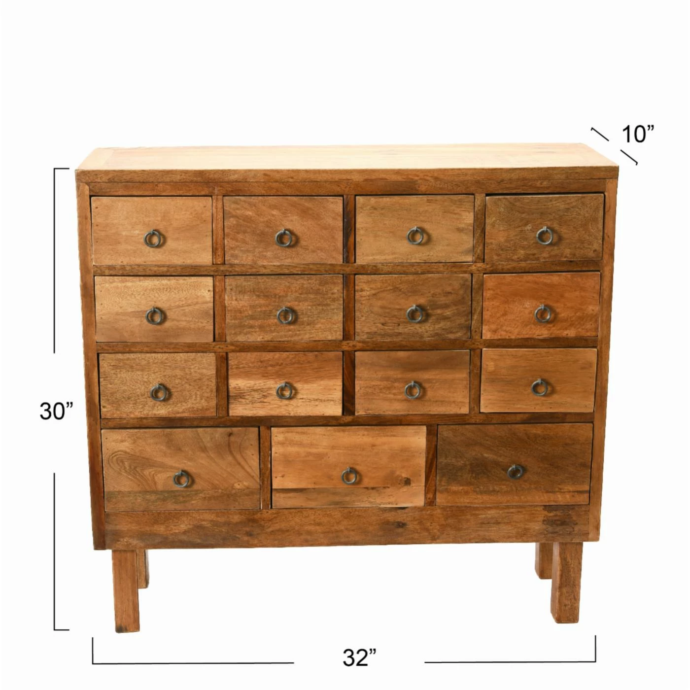 Add a magical touch of vintage inspired dΓ©cor to any living space with this unique apothecary chest. With 100% reclaimed wood construction in a natural finish and 15 intricately designed drawers, this is the ideal statement piece to store and display treasured items. Rustic apothecary chest or medicine cabinet showcases gorgeous reclaimed wood.