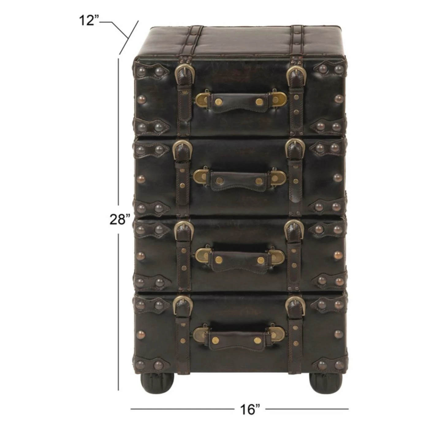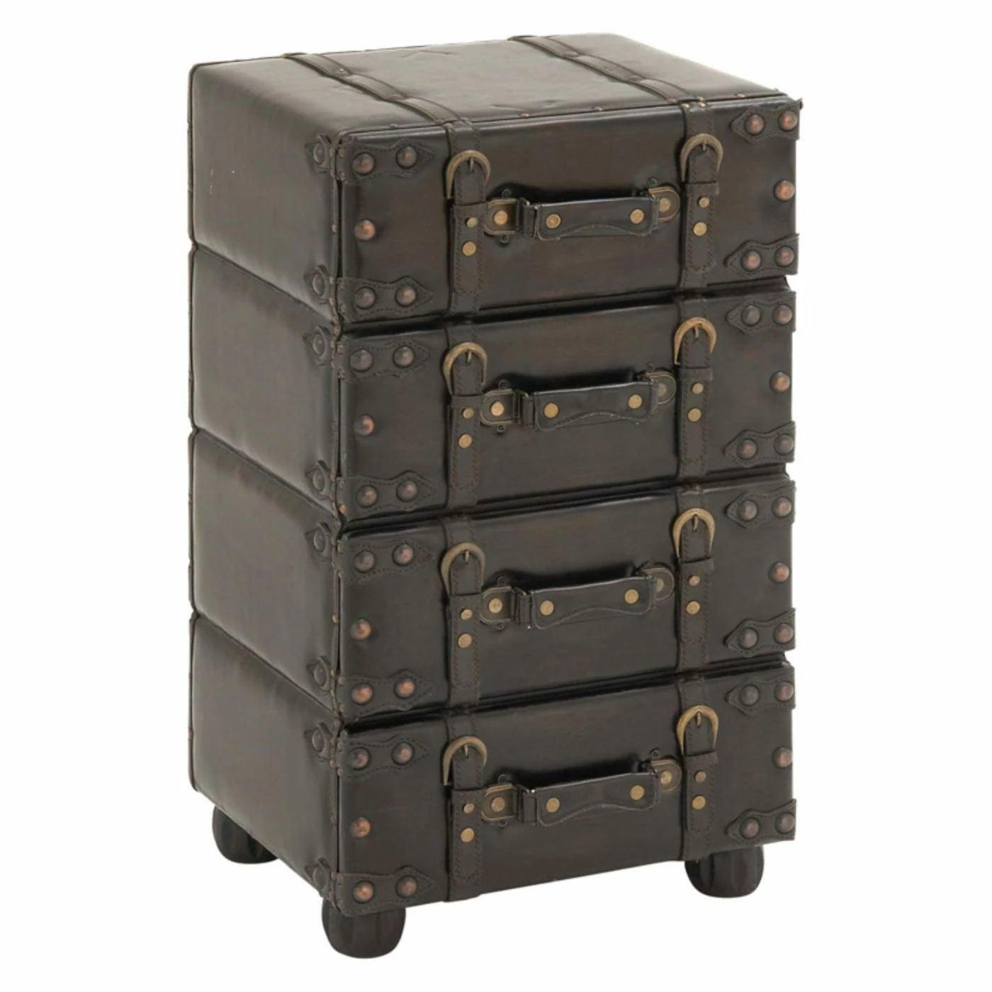 Show off your love for travel by accessorizing your home with the DecMode 4 Drawer Decorative Chest. This stacked luggage see table features four drawers for concealed storage. Buckle and grommet details enhance the authentic look of this piece.